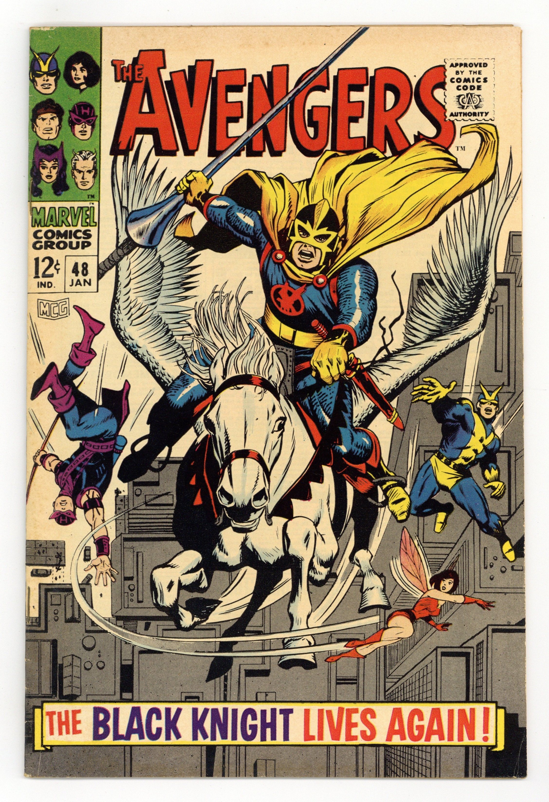 Ended Jul 28 2025 Bid History 17 bids Winning Bid $63 First appearance of the new Black Knight (aka Dane Whitman) in "The Black Knight Lives Again!" Script by Roy Thomas. Art by George Tuska. Cover by George Tuska. Inside Garrett Castle Quicksilver and the Scarlet Witch are prisoners of Magneto! And the Master of Magnetism is admonishing them to rejoin the brotherhood! While elsewhere in the castle, a stunning transformation is occurring as Dane Whitman decides to take up the mantle of the Black Knight! Dane wants the knight to become a force for good! So, his first act is to fly to Avengers Mansion and tell the Avengers about Wanda and Pietro's plight! But Earth's Mightiest Heroes mistake Dane for the evil Black Knight and attack! Will the new knight's career be over before it even starts? Meanwhile in Olympus, Hercules discovers the Temple of the Promethean Flame in ruins and his fellow gods missing! Origin of the new Black Knight. First appearance of Aragorn - the winged horse. Cameo appearances by Jarvis and the Toad. Flashback cameo by Nathan Garrett - the previous Black Knight. Avengers Lineup: Hawkeye, Goliath (aka Hank Pym), Hercules, Quicksilver, Scarlet Witch, and the Wasp. (Notes: The letters page includes a letter from comics historian Peter Sanderson. This issue was reprinted in Marvel Triple Action #40.) 36 pages, full color. Cover price $0.12. Grade: VG- 3.5 explanation of grade Condition: Used (collectible)