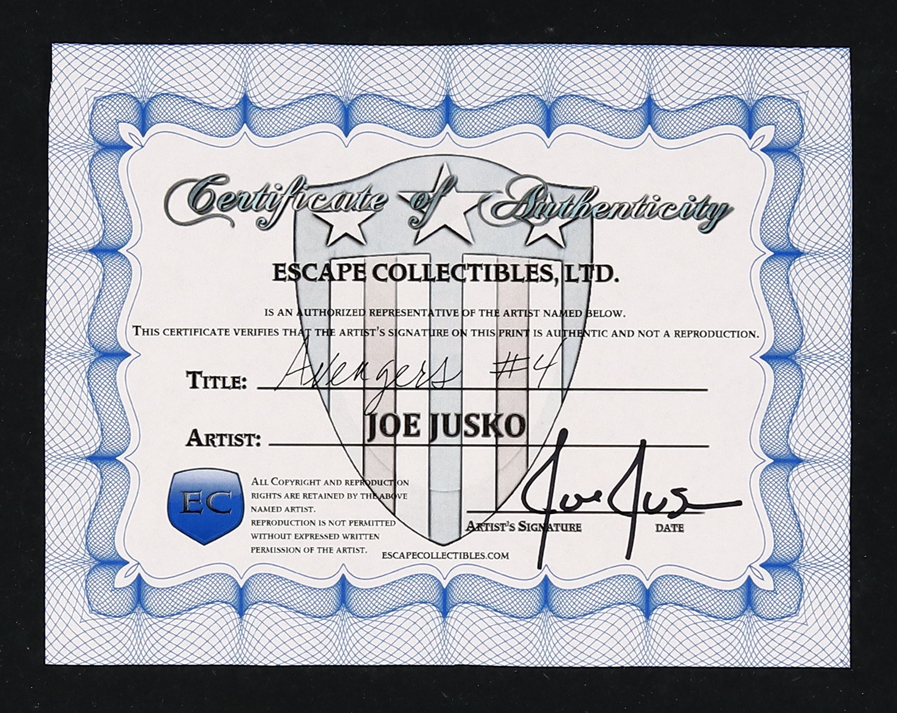 Signed by the artist with certificate of authenticity from Escape Collectibles Limited. High quality print on heavy, glossy stock. 8 1/2" x 11".