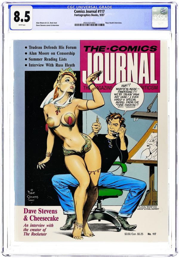 Ended Jul 17 2025 Bid History 14 bids Winning Bid $282 Dave Stevens and cheesecake - an interview with the creator of the Rocketeer; Alan Moore on censorship; Trudeau defends his forum; interview with Russ Heath; summer reading lists. Cover by Dave Stevens. Cover price $3.50. Grade: CGC 8.5 explanation of grade Condition: Used (collectible)