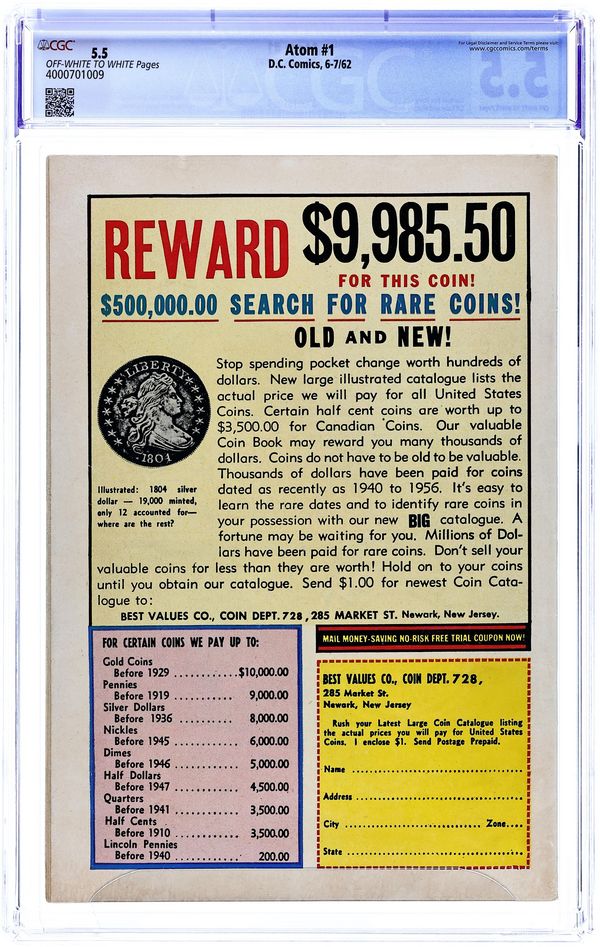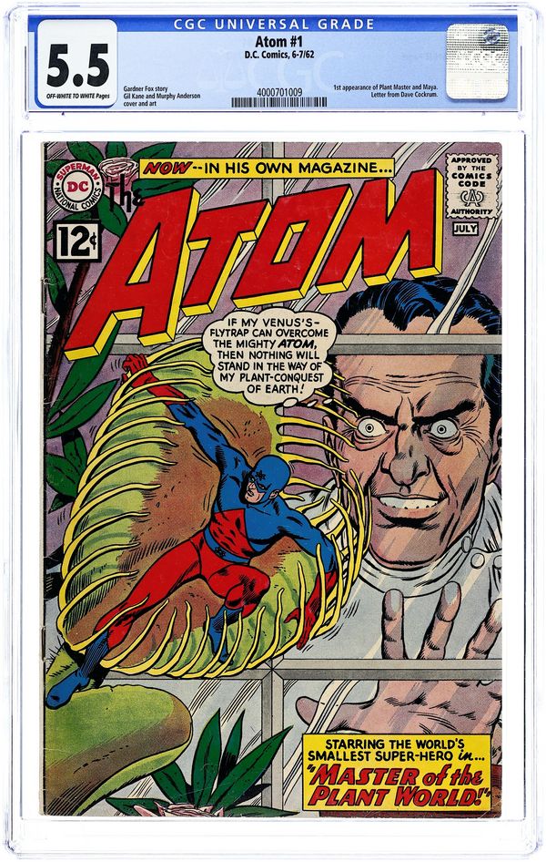 Ended Jul 15 2025 Bid History 14 bids Winning Bid $179 Cover pencils by Gil Kane, inks by Murphy Anderson. "Master of the Plant World!", script by Gardner Fox, pencils by Gil Kane, inks by Murphy Anderson; When a series of mysterious robberies occur which involve strange highly intelligent plants, Ray Palmer decides to investigate as the Atom when he learns about the strange circumstances from Jean Loring; As the Atom, Ray follows Jean as she goes on fact finding about the type of plants that are used, and decides to wait out in a greenhouse to keep a secret eye on Jean; When Jean nods off, Atom notices a group of Dryads that suddenly spring out of the flowers and fly away on petals. Atom follows after them and learns that they are under the control of a criminal called the Plant Master, who intends to use his mutated plants to try and take over the world; Trying to stop the Planet Master, the Atom is trapped in a Venus fly trap while the Planet Master leaves with the Dryads to initiate his plan. 36 pgs., full color. Cover price $0.12. Grade: CGC 5.5 explanation of grade Condition: Used (collectible)
