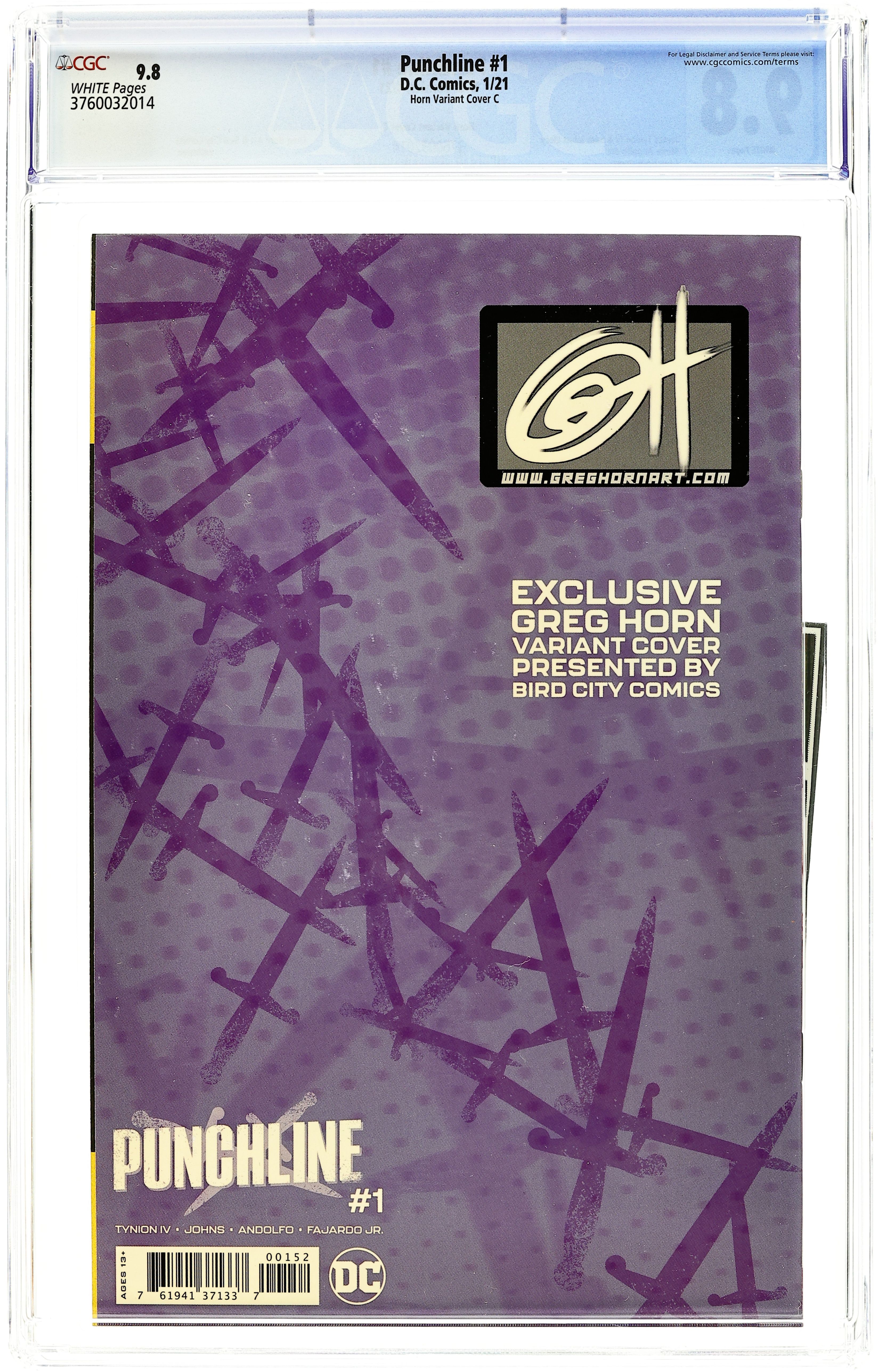 Ended Jul 18 2025 Bid History 11 bids Winning Bid $29 Bird City Comic and GregHornArt.Com Exclusive Virgin Cover by Greg Horn. Written by James Tynion TV and Sam Johns. Art by Mirka Andolfo. Spinning out of the pages of The Joker War comes the first solo book starring the blockbuster new character Punchline. As she faces the consequences for her role in The Joker War, the story of how Alexis Kaye became Punchline will take Leslie Thompkins, Harper Row, and Cullen Row on a harrowing journey that reveals a fringe teenagers radicalization to the ideology of a madman. Its a terrifying tale so big it demanded an oversize special issue! 48 pages, full color. Rated T+ Grade: CGC 9.8 explanation of grade Condition: Used (collectible)