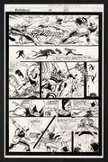 It's all out action as Moon Knight, reeling from an attack on his home by his brother Randall Spector, takes the fight directly to the Knights of the Moon! A beautifully crafted fight page here with not only some choice panels of Moon Knight in combat, but HAND-DRAWN onomatopoeia blending in beautifully with the action. Pencil and ink on Marvel Comics art board. 11" x 17".