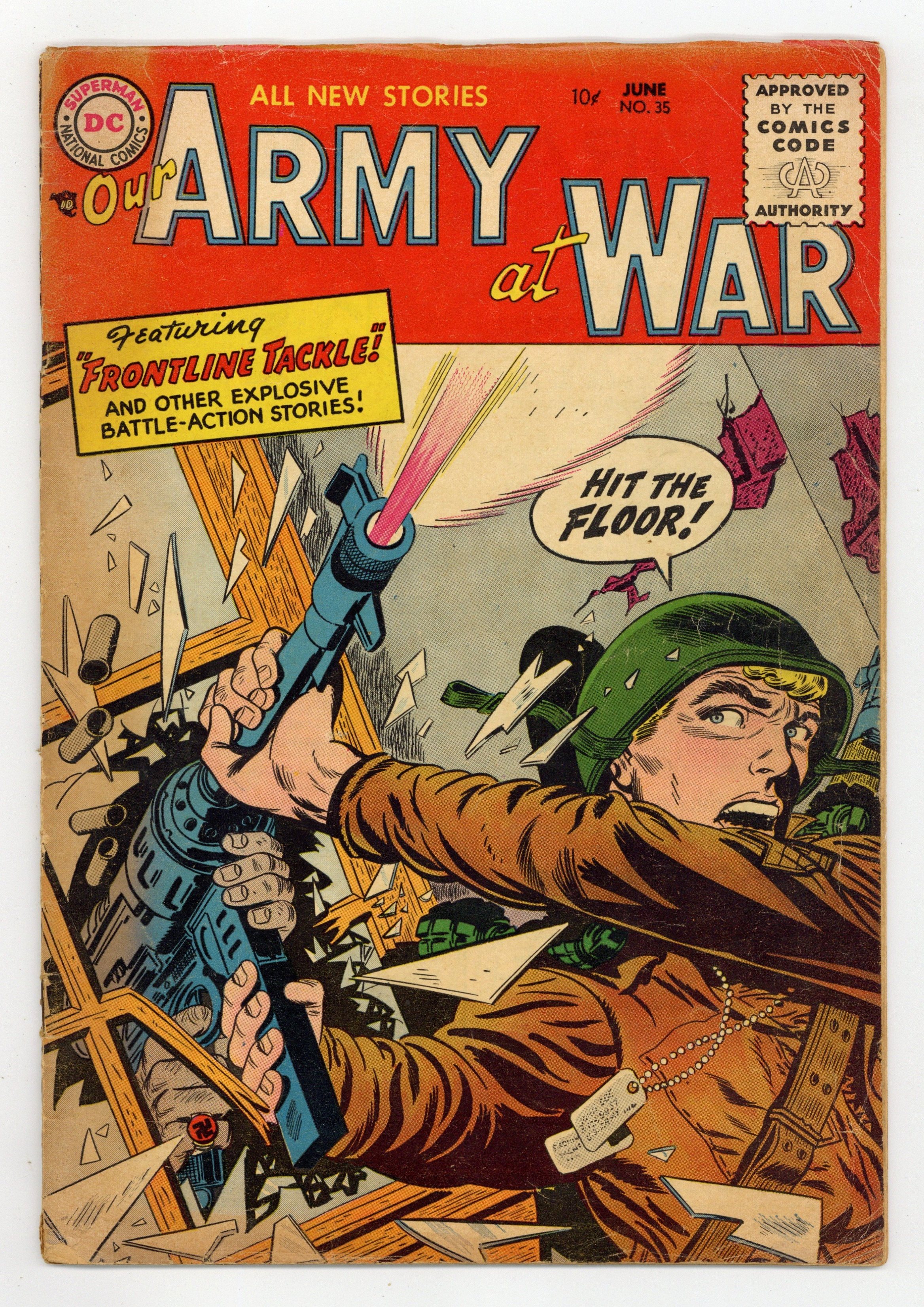 Cover art by Jerry Grandenetti. Frontline Tackle, script by Bob Kanigher, art by Irv Novick. Battle of the Broken Bow, script by Ed (France) Herron, pencils by Ross Andru, inks by Mike Esposito. Infantry Admiral, script by Ed (France) Herron, art by Howard Sherman. I.O.U. One Pair of Dogtags, script by Bob Kanigher (as Causin), art by Russ Heath. 36 Pages, Full Color. Cover price $0.10. Grade: GD/VG 3.0 explanation of grade Condition: Used (collectible)