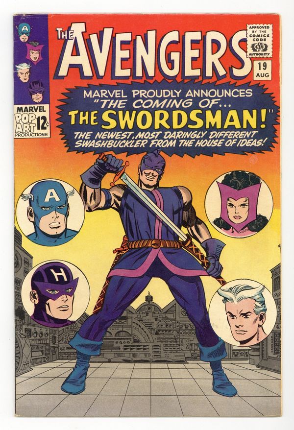 Ended Aug 4 2025 Bid History 14 bids Winning Bid $75 Cover pencils by Jack Kirby and Don Heck (insets), inks by Frank Giacoia. First appearance of the Swordsman and the origin of Hawkeye in "The Coming of... the Swordsman!", script by Stan Lee, pencils by Don Heck, inks by Dick Ayers; The Swordsman infiltrates the Avenger's base and Scarlet Witch and Quicksilver attack him; He then admits he was testing them and wants to apply for membership; Captain America intervenes with information saying he is a wanted man and the Swordsman escapes; Hawkeye explains that the Swordsman used to be his tutor when he was in the circus; Meanwhile, in Nick Fury's office in Washington D.C HYDRA agents find a letter from Captain America; They later discard it as trash; It explained how Captain America wanted to work for S.H.I.E.L.D.; A mobster finds it and gives it to the Swordsman; A trap is laid for Captain America; He then leaves to meet with "Nick Fury"; Hawkeye finds out about the plan and gathers the other Avengers to help him; Captain America battles the Swordsman and gets captured before the others can arrive to help. Avengers Roll Call: Captain America, Hawkeye, Quicksilver, and the Scarlet Witch. Letter to the editor from Cary Burkett. 36 pgs., full color. $0.12. Cover price $0.12. Grade: VG/FN 5.0 explanation of grade Condition: Used (collectible)