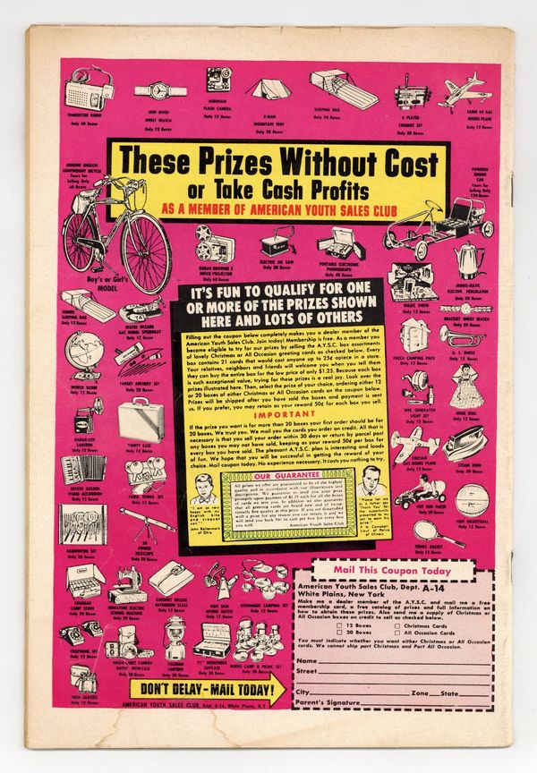 Ended Aug 4 2025 Bid History 9 bids Winning Bid $31 Cover pencils by Curt Swan, inks by Stan Kaye. The Origin of the Superman-Batman Team!, script by Jerry Coleman, art by George Papp; The Wayne family moves to Smallville and young Bruce Wayne assumes the identity of the Flying Fox, helping Superboy fight crime. House ad for Superman Annual #1. Champion of the World starring Congorilla, script by Robert Bernstein, art by Howard Sherman; Congo Bill and his gorilla alter ego help a boxer regain his self-confidence in the ring. The Interplanetary Mission! starring Aquaman, script by Robert Bernstein, art by Ramona Fradon. 36 pages, Full Color. Cover price $0.10. Grade: VG- 3.5 explanation of grade Condition: Used (collectible)
