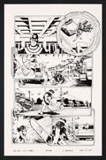 It's a bodyswap boogaloo for Shulkie in this fantastic annual story! When a wealthy man's son is killed by a supervillain, he puts out a bounty on the villain offering to leave his entire fortune to any hero who would end the villain for good- unfortunately they're all pretty serious about the whole no-killing thing. Bullseye however, is not and alongside Machinesmith comes up with a plan to swamp bodies with a hero, take out the villain, and collect the bounty which is bad news for Shulkie! As the story is told from the point of view of Machinesmith's memories, MacDonald brilliantly styles the panels to appear as computer windows and drone lenses giving us a unique perspective on Bullseye trying to get used to controlling She-Hulk's body. Ink over printed roughs on art board. NOTE: A 8 1/2" x 5 1/2" redraw panel is taped to the reverse of the page with painter's tape which features the art used in the final issue, swapping Bullseye for Machinesmith in the first panel of the page.