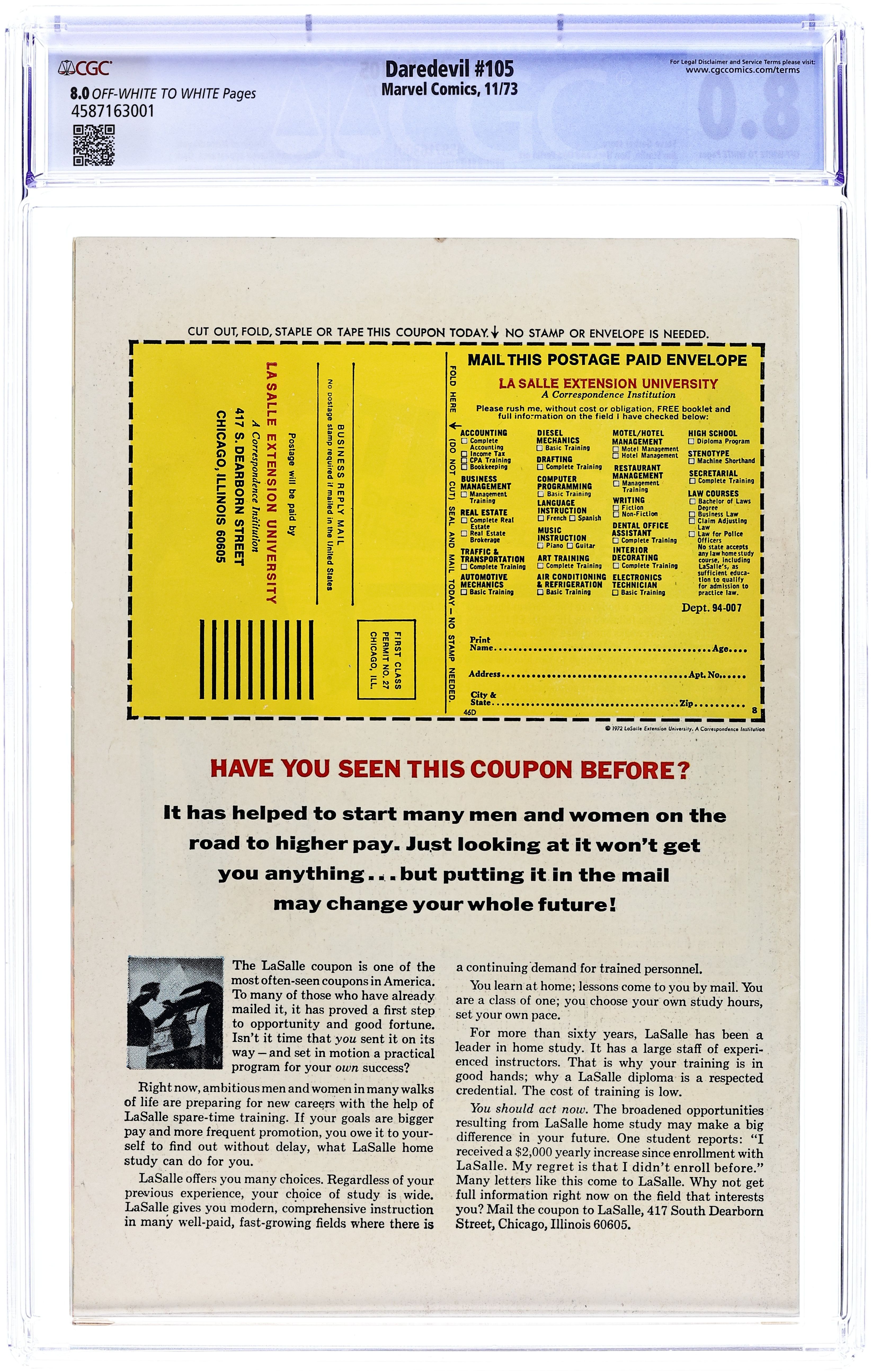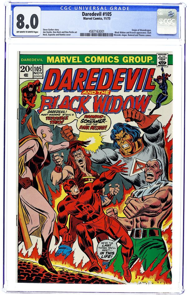 Tags: Marvel Legacy Numbering: Daredevil (part 105), Thanos: The Final Threat (part 9), Black Widow, DaredevilDaredevil (1964 1st Series) 105 CGC 8.0