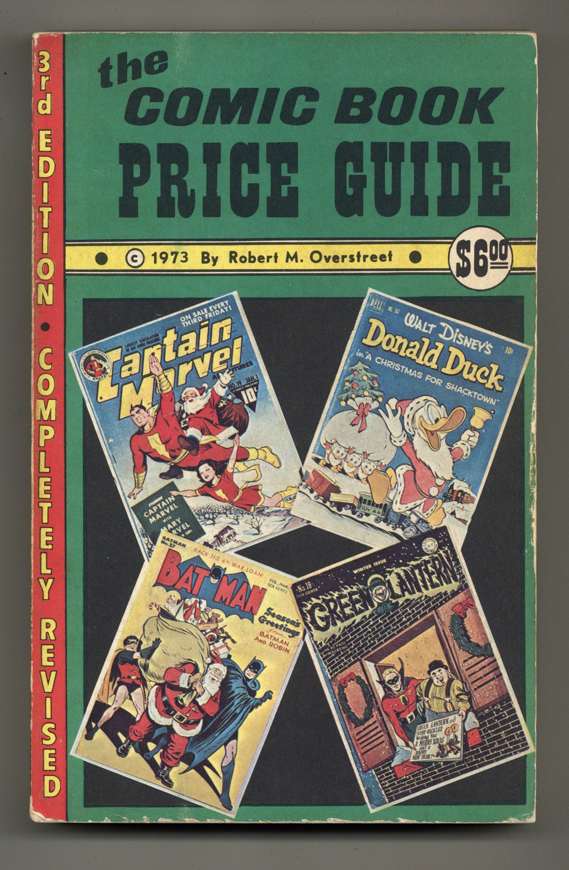 Ended Jul 28 2025 Bid History 16 bids Winning Bid $42 Official Overstreet Comic Book Price Guide is a yearly publications which details the changes in the resale value of a comic over the last year. Overstreet has been running its publication for over 35 years and is regarding by many as one of the leading sources for backissue comic book pricing. The Third Edition (1973) features a cover portraying the covers of Batman #27, Captain Marvel Adventures (1941) #19, Four Color (1942 Series 2) #367 starring Donald Duck, and Green Lantern (1941-49 Golden Age) #18. All four covers are Christmas themed. 400 pages, square-bound softcover. Cover price $6.00. Grade: VG 4.0 explanation of grade Condition: Used (collectible)