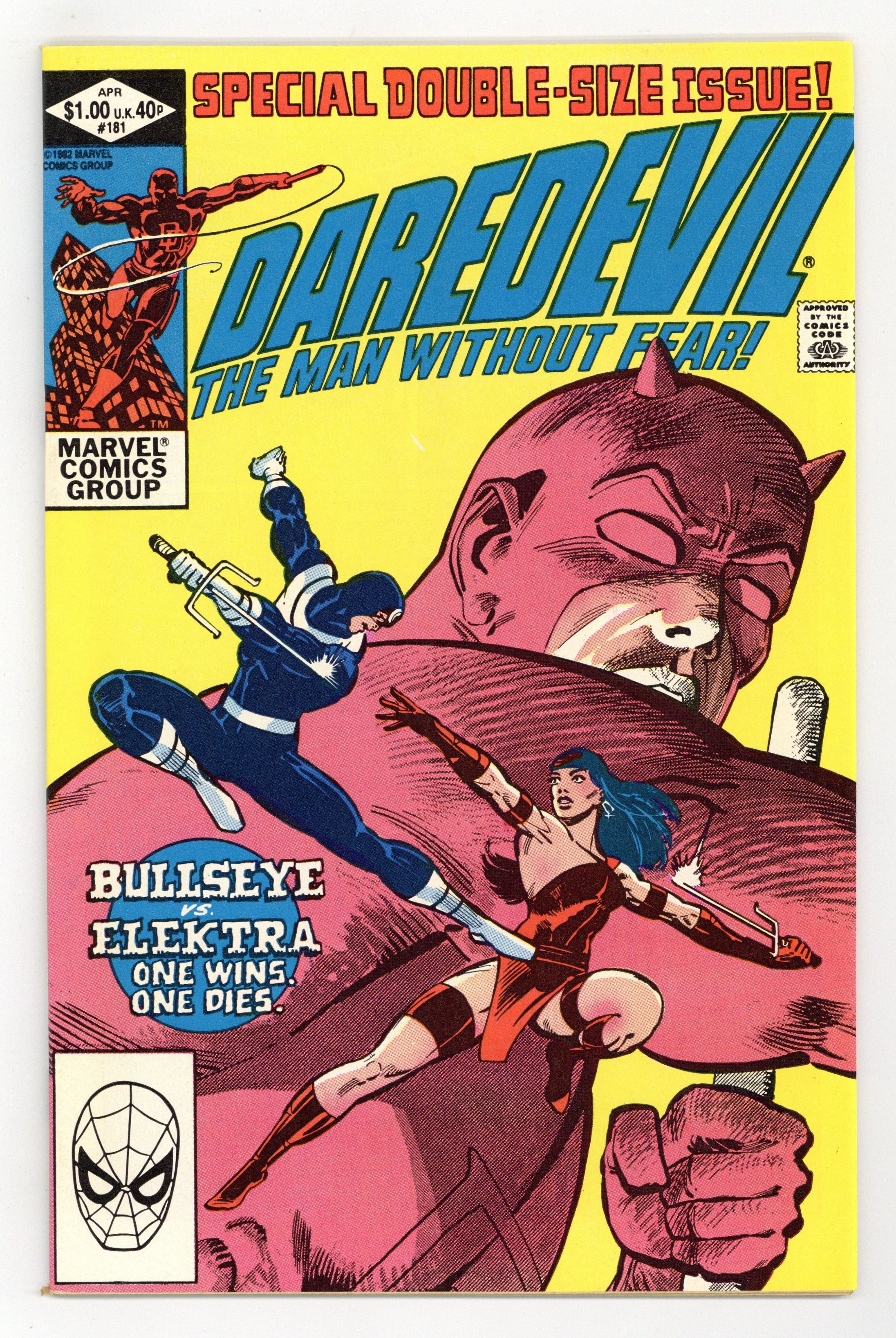 Ended Aug 18 2025 Bid History 11 bids Winning Bid $26 Direct Edition. Cover pencils by Frank Miller, inks by Klaus Janson. Last Hand, script by Frank Miller, pencils by Frank Miller (breakdowns) and Klaus Janson (finished art), inks by Klaus Janson; Bullseye breaks out of prison; Elektra hunts down Foggy and is about to kill him until she recognizes him as Matt's buddy from college; Bullseye fights Elektra and kills her with her own sai; DD goes after Bullseye and ends up dropping him from a great height, breaking every bone in his body; Kingpin appearance; story narrated by Bullseye; story dedicated to the memory of Wally Wood 1927-1981. Full page pin-up ad for Marvel Fanfare, art by Michael Golden. Statement of Ownership average # of copies in preceding 12 months: 276,812 Cover price $1.00. Grade: FN/VF 7.0 explanation of grade Condition: Used (collectible)