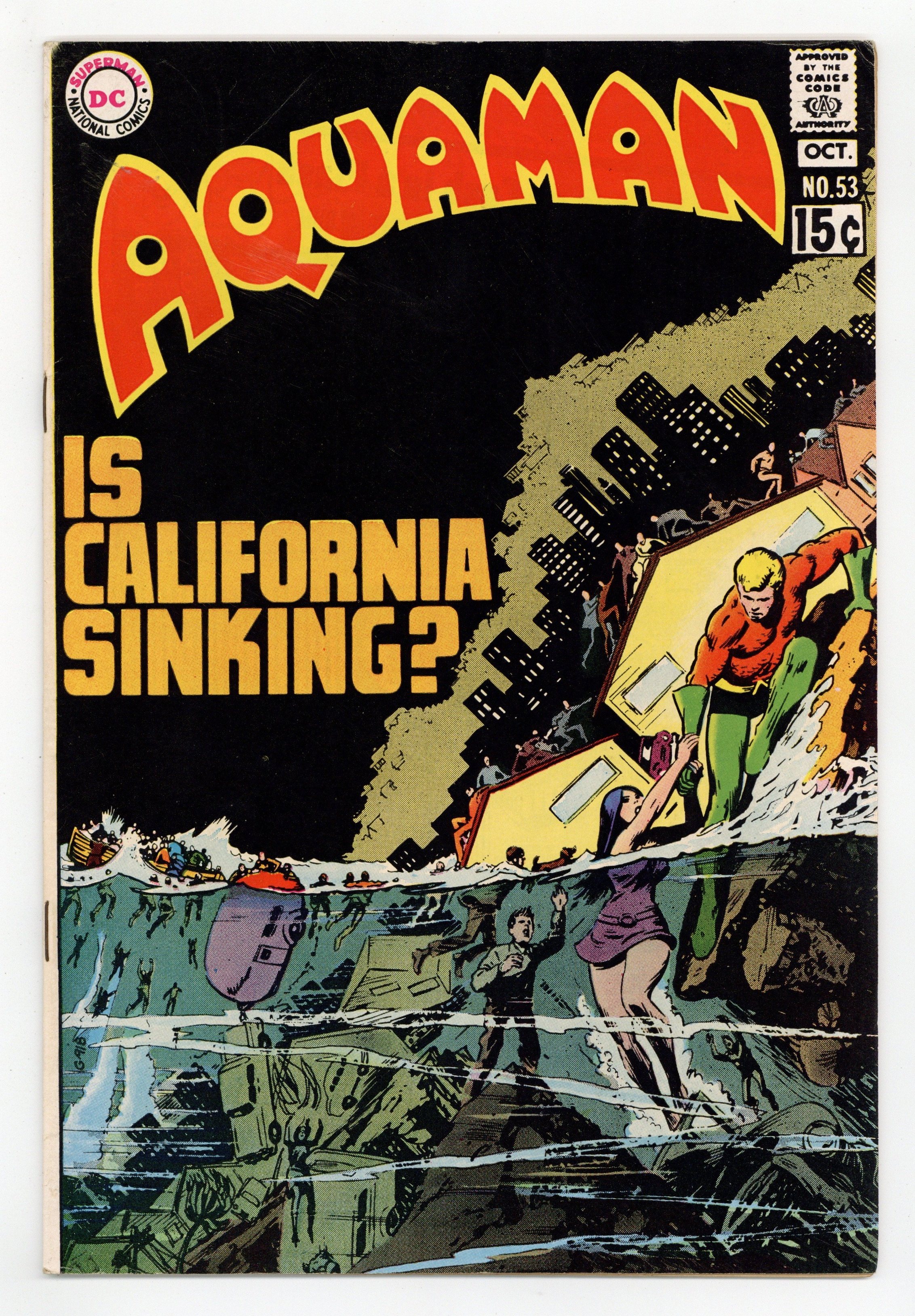 Ends Dec 8 7:29 PM CST Bid History 6 bids Current Bid $11 Your Secret Max Bid If you'd like to bid, please log in or register. Cover art by Nick Cardy. Is California Sinking?, script by Steve Skeates, art by Jim Aparo; O.G.R.E. agents tell California millionaire Eliot Harlanson that California will sink into the ocean and convince him to buy an atomic bomb for use against Atlantis; Aquaman faces off against Black Manta. 36 pgs. $0.15. Cover price $0.15. Grade: VG/FN 5.0 explanation of grade Condition: Used (collectible)