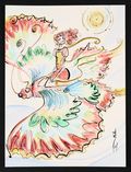 Richard perfectly captures a bit of the anything-can-happen energy of the Golden Age in this beautiful piece that sees Mary serenely riding along on the back of a giant moth. Pencil, ink, and watercolor on watercolor stock. 9" x 12".
