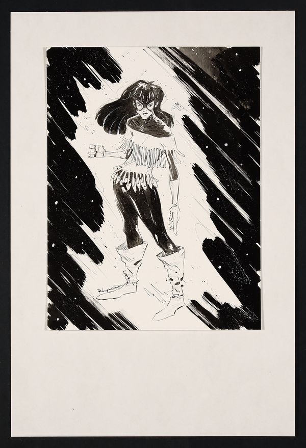 Appearing out of the darkness like...well, like a Mirage! Ortiz brings his trademark energy to this fantastic depiction of Dani Moonstar. Signed by the artist. Pencil and ink on heavy board. 9" x 12.