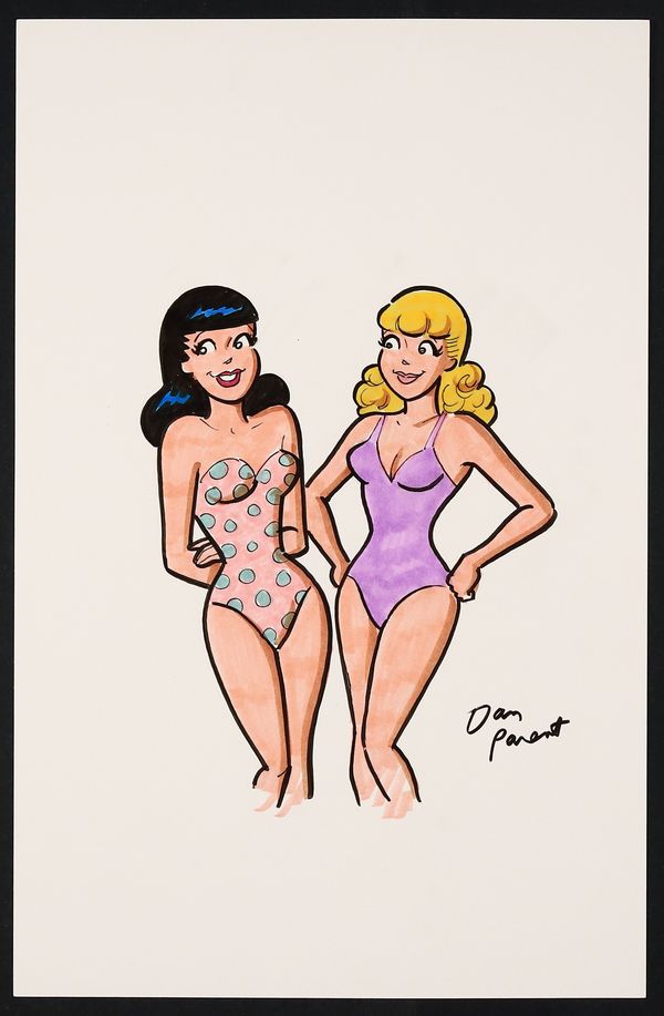 • A fantastic image of the pair, ready for the beach and sporting their iconic 40's hairstyles. Signed by the artist. Pencil, ink, and alcohol marker on art board. 11" x 17".