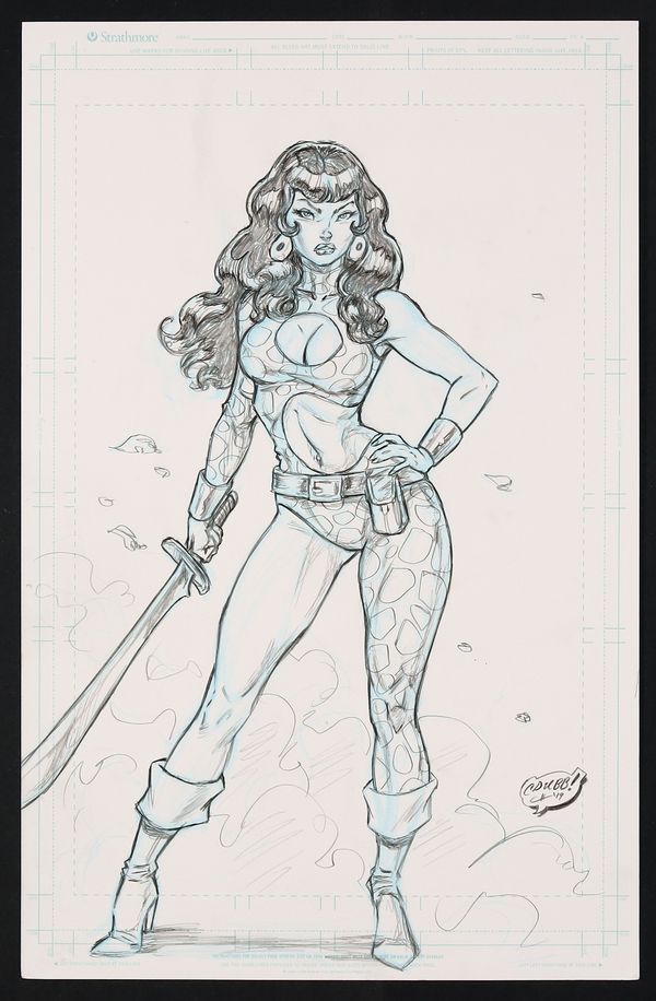 Williams turns in a cover-worthy piece here, giving the David Michiline and Mike Vosburg creation a great showcase! Signed by the artist. Pencil on comic art board. 11" x 17"