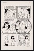 Inspired by Dilton's logical appraisal of comics' greatest love triangle, Betty decides she's done with Archie. SO done in fact, that her new outlook has rubbed off on Veronica- which is exactly what Betty wanted all along! Signed by Shultz in lower margin. Pencil and ink on comic art board. 11" x 17".