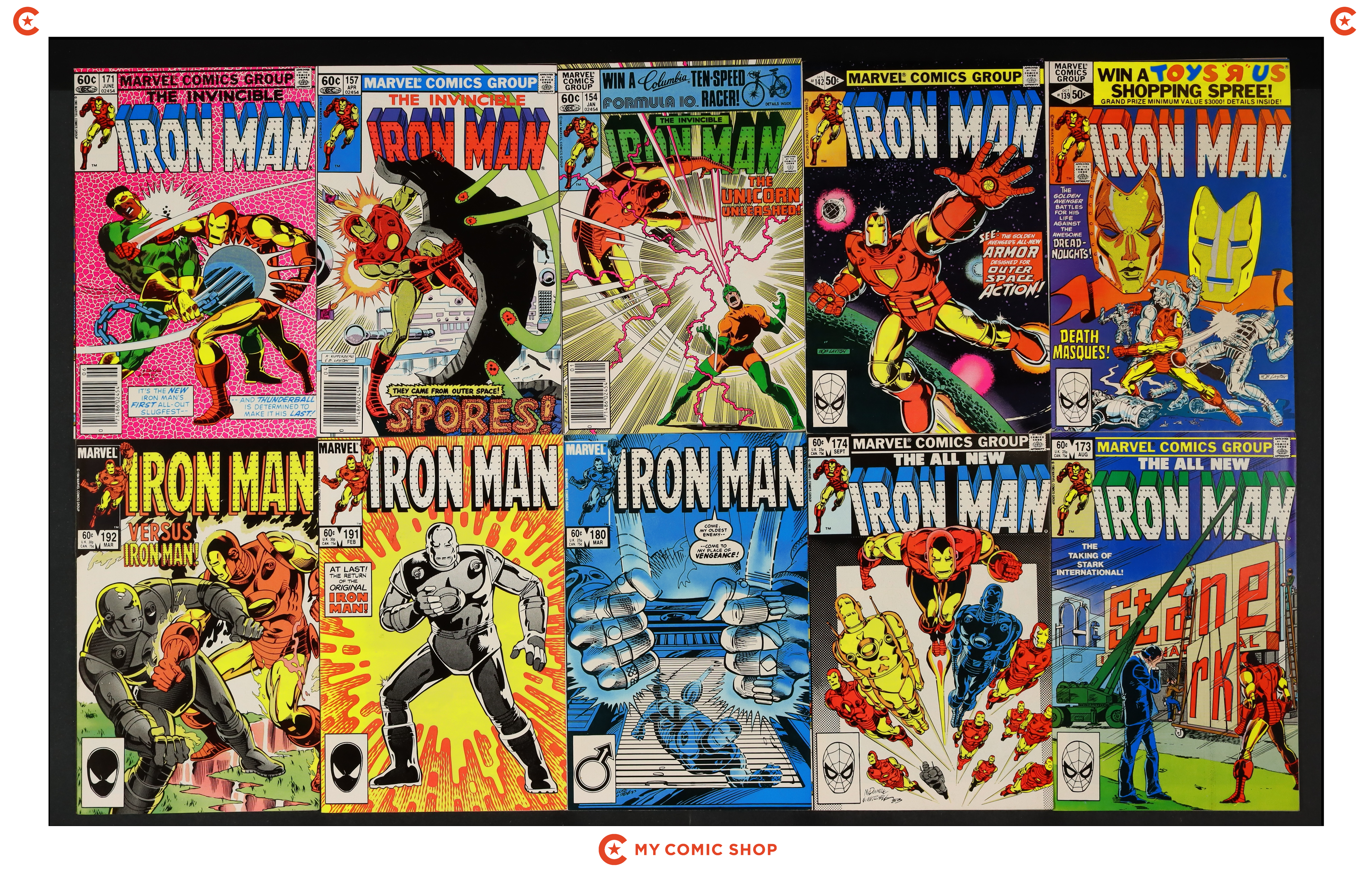 Issues 139D, 142, 154, 157N, 171, 173, 174D, 180, 191, and 192 of Iron Man (1968 1st Series). Most will grade in the VF to FN range.