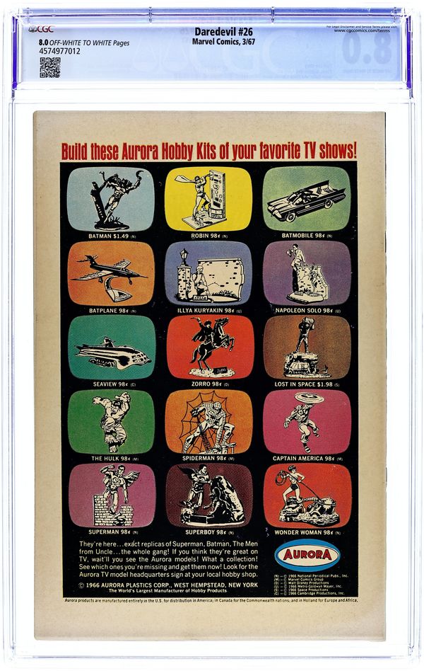 Tags: Marvel Legacy Numbering: Daredevil (part 26), DaredevilDaredevil (1964 1st Series) 26 CGC 8.0