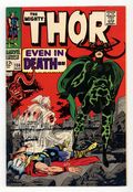 Cover pencils by Jack Kirby, inks by Vince Colletta. Loki, Karnilla, the Wrecker, and the Destroyer gang up on Thor in "Even in Death," script by Stan Lee, pencils by Jack Kirby, inks by Vince Colletta; The Wrecker leaves Thor for dead; Thor, rebuffing Hela, returns to his body to face the enemy; Sif and Baldur face Karnilla and Loki; Sif is tricked into entering the Destroyer which takes out the Wrecker but now faces the weakened Thor. "Origins of the Inhumans" back-up: "Triton," script by Stan Lee, pencils by Jack Kirby, inks by Joe Sinnott; Triton allows himself to be captured by humans to learn more about the outside world; Origin of Triton. This issue also contains a statement of ownership: average print run 497,708; average paid circulation 298,219. 36 pgs., full color. Cover price $0.12. Grade: FN- 5.5 explanation of grade Condition: Used (collectible)