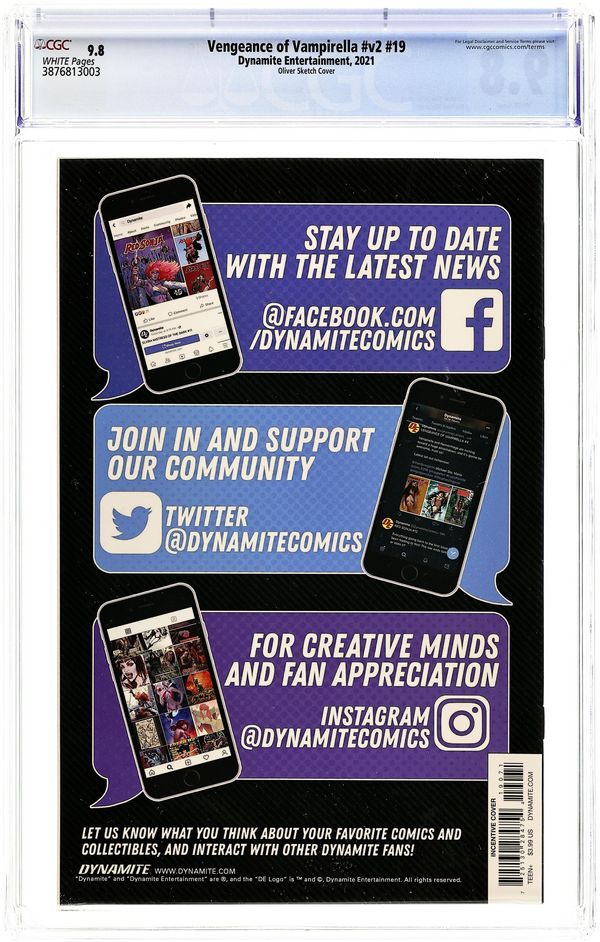 Tags: VampiresPublished Jun 2021 by Dynamite Entertainment.Vengeance of Vampirella (2019 Dynamite) 19G CGC 9.8 Oliver B&W 1:30 Variant