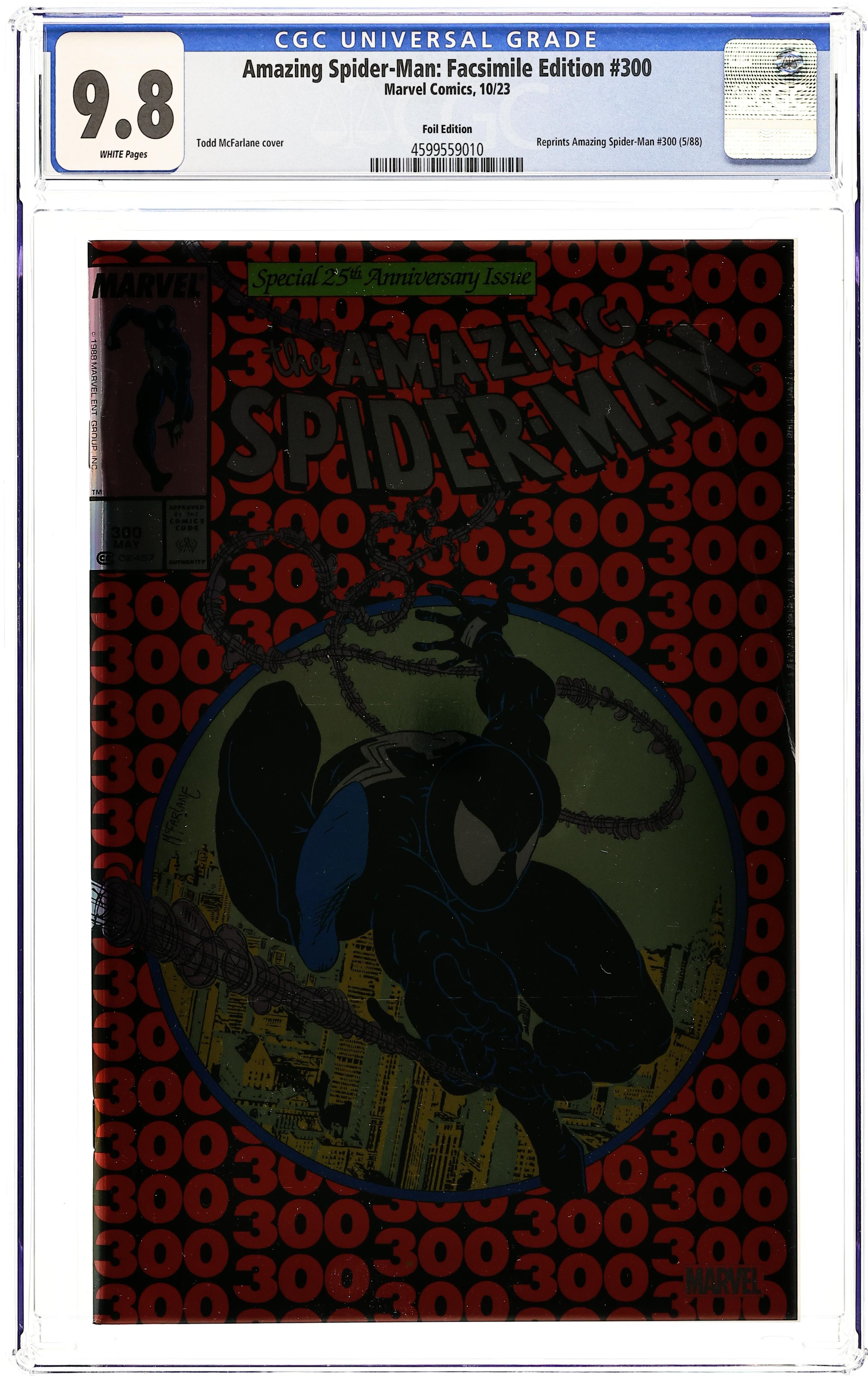 Ended Aug 4 2025 Bid History 9 bids Winning Bid $32 Foil Edition. Written by David Michelinie. Art by Todd McFarlane. Cover by Todd McFarlane. One of the fiercest rivalries of all is born in battle as Spider-Man meets his deadliest foe…a terrifying entity with all his powers, twice the muscle and two reasons to hate the wall-crawler! Because the symbiote costume that Peter Parker rejected has bonded with disgraced reporter Eddie Brock, who blames Spidey for ruining his career! Together, they…are…Venom! They've already terrorized Mary Jane, and now they seek revenge on their mutual nemesis! Can Peter summon all his strength and will and somehow find a weakness to exploit in Venom? Or will the bell toll for Spider-Man? From the fan-favorite creative team of David Michelinie and Todd McFarlane, it's one of the all-time great Marvel comic books, boldly re-presented in its original form, ads and all! 48 pages, full color. Rated T Grade: CGC 9.8 explanation of grade Condition: Used (collectible)