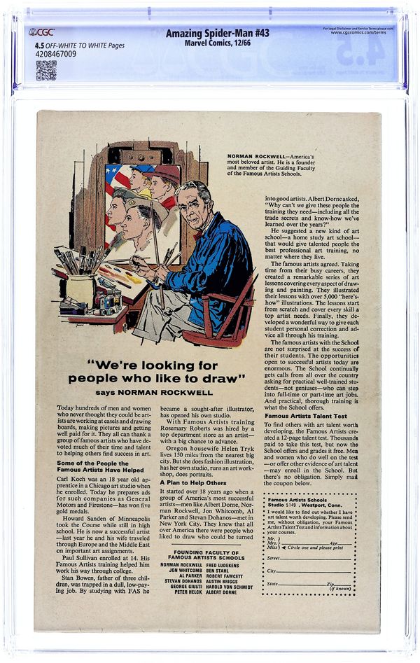 Tags: Marvel Legacy Numbering: Amazing Spider-Man (part 43), Spider-ManAmazing Spider-Man (1963 1st Series) 43 CGC 4.5
