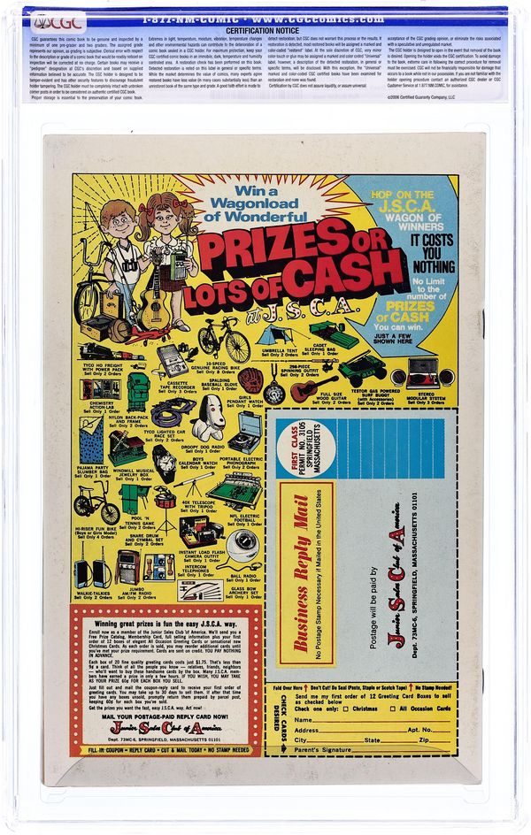 Ended Aug 4 2025 Bid History 11 bids Winning Bid $42 "Betrayal!" Avengers-Defenders crossover. Part 3 of 8. Guest-starring the Defenders. Script by Steve Englehart. Pencils by Bob Brown. Inks by Mike Esposito. Cover by John Romita and Mike Esposito. Story continues from Defenders 8. Earth's Mightiest Heroes visit Dr. Strange's townhouse in Greenwich Village and request permission to enter, but Wong slams the door in their faces! After an angry Thor breaks down the door, the Avengers storm inside, but a mystic spell sweeps them back out onto the street! Meanwhile gathered around the Orb of Agamotto, the Defenders put together a plan to find the six pieces of the Evil Eye. However, in the dark realm, Loki has grown suspicious of his dreadful ally! And contacts the Avengers to tell them about the Defenders' search for the ancient instrument from Avalon! So the die is cast! And the blockbuster battles are about to begin! Flashback cameos by Prester John, Wyatt Wingfoot, and the Human Torch to recap the history of the Evil Eye. Next Chapter: "The Silver Surfer vs. the Vision and the Scarlet Witch" The Avengers-Defenders Clash kicks into high gear as members of both teams span the globe to searching for the Evil Eye! And the first showdown features two of the most popular Marvel super-heroes of the 1970's! The Silver Surfer arrives in French Polynesia and plunges into the island's indigenous volcano to look for the Evil Eye. But the cosmic sky-rider's probing triggers a volcanic eruption! The fiery blast knocks a passing quinjet out of the sky and nearly kills the Scarlet Witch! Needless to say, this act enrages the synthezoid avenger! And in the heart of the raging volcano, the Vision and the Silver Surfer fight for the Evil Eye! Story continues in Defenders 9. (Notes: The Evil Eye previously appeared in Fantastic Four 54. This issue includes a full-page survey for readers to complete and mail back to the Marvel bullpen. A reprint edition exists for this issue.) 36 pgs. Cover price $0.20. Grade: CGC 6.5 explanation of grade Condition: Used (collectible)