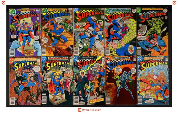 Issues 309, 312, 325, 337-339, 341, 342, and 344 of Superman (1939 1st Series); and 336UK of Superman (1939 1st Series) UK Edition. Most will grade in the VG to GD range.