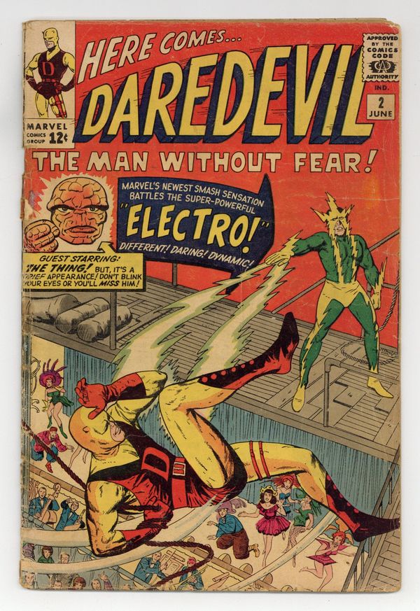 Cover pencils by Jack Kirby, inks by Vince Colletta. The Evil Menace of Electro!, script by Stan Lee, pencils by Joe Orlando, inks by Vince Colletta; The Thing and the F.F. hire Matt to look over the new lease on the Baxter Building; Matt goes to inspect the property but, unbeknownst to him, Electro has broken in to steal all of Reed Richard's secrets; Mayhem ensues; Fantastic Four cameo. 36 pgs. Cover price $0.12. Cover price $0.12. Grade: PR 0.5 explanation of grade Condition: Used (collectible)