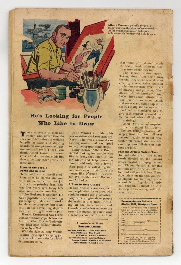 - INCOMPLETE. First page torn in half, interrupts art and story. Cover oxidation. Water damage.