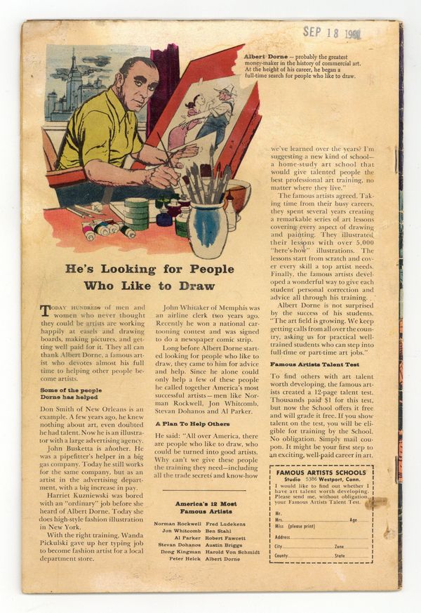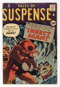 Cover pencils by Jack Kirby, inks by Dick Ayers. "The Insect Man," pencils by Jack Kirby, inks by Dick Ayers; A soldier is placed underground in a capsule to test the effects of isolation; He is attacked by a telepathic insect. "Mystery Pupil" text story, art by Joe Maneely. "Beware... the Ticking Clocks!", pencils by Jack Kirby, inks by George Klein; A king is beset by an assassin in the king's clockroom whereupon the assassin is magiked into yet another figurine upon the king's favorite timepiece. "Something Lurks in the Fog!", art by Don Heck; An unrepentant con-man is scared straight when he strays onto a forbidden road and enters a world between life and death. "Long Live the King!", script by Stan Lee, art by Steve Ditko; A greedy prince marries a dowager queen; He tries to use her sleepwalking to cause her death, but the portrait of her husband calls out to warn her, and ghostly hands push the prince to his death. 36 pages, full color. Cover price $0.10. Grade: GD- 1.8 explanation of grade Condition: Used (collectible)