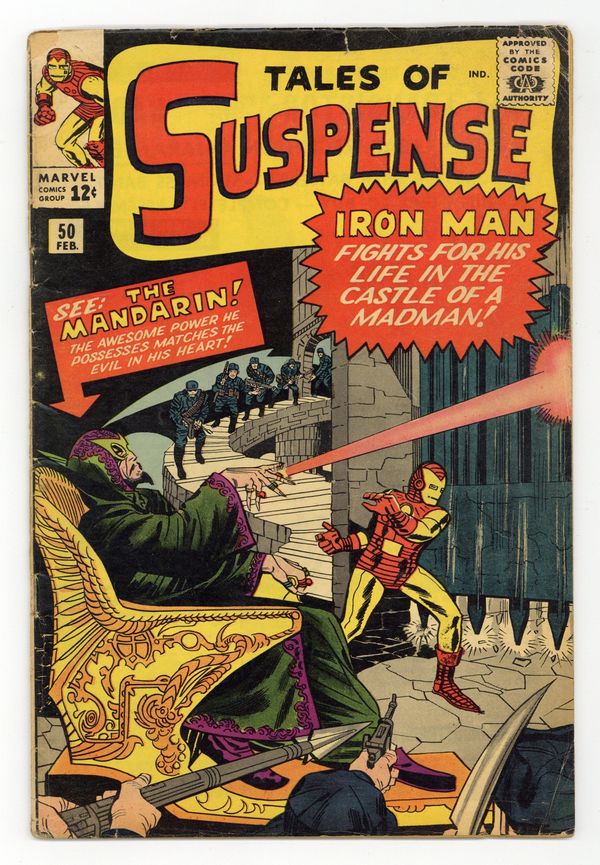 Cover pencils by Jack Kirby, inks by George Roussos. The first appearance of the Mandarin is in the Iron Man story, "The Hands of the Mandarin!", script by Stan Lee, art by Don Heck; The Pentagon sends Iron Man into red China to get information on the Mandarin, an evil scientist feared even by the Communist regime; Iron Man struggles to overcome the Mandarin's powerful rings and martial arts, but he escapes his castle. "Them!", script by Stan Lee (plot) and Larry Lieber (script), pencils by Larry Lieber, inks by George Roussos (as G. Bell); A man frantically tries to convince passersby that he is being chased by storybook characters; He is arrested by the police, but disappears from his jail cell, as he himself is a fictional character created by Larry Lieber. "Journey's End!", script by Stan Lee (plot) and Larry Lieber (script), pencils by Larry Lieber, inks by Sol Brodsky; A meek and lonely space pilot volunteers for a suicide mission to investigate a strange cosmic cloud; the cloud hides a utopian planet, whose inhabitants only want humans brave enough to face the unknown to visit them. 36 pages, full color. Cover price $0.12. Grade: GD/VG 3.0 explanation of grade Condition: Used (collectible)