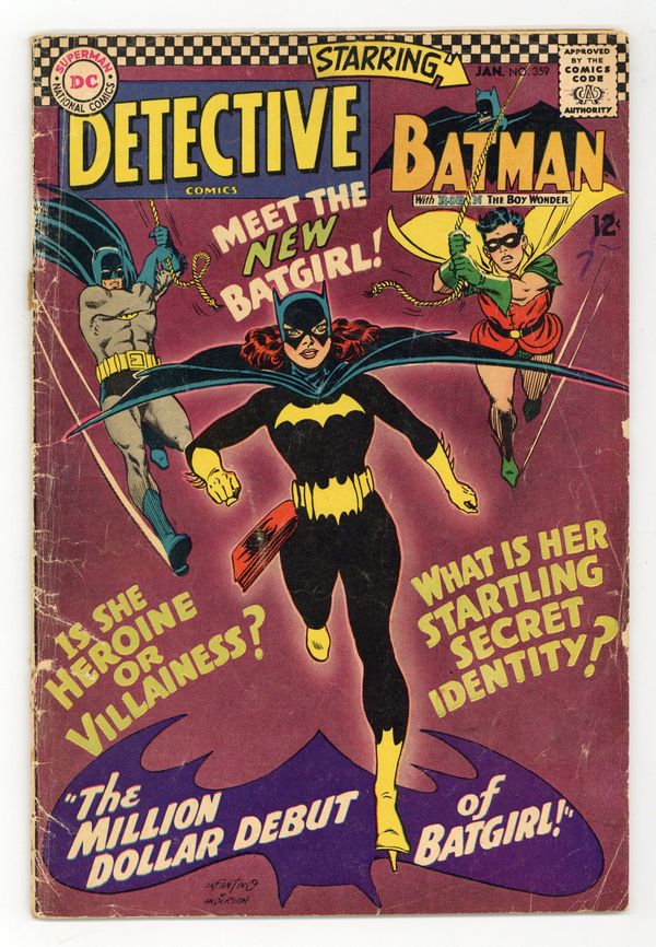 Ended Oct 14 2025 Bid History 23 bids Winning Bid $216 Written by Gardner Fox. Art by Carmine Infantino and Sid Greene. Cover by Carmine Infantino and Murphy Anderson. 1st appearance of the new Batgirl (Barbara Gordon) in The Million Dollar Debut of Batgirl!; Batgirl goes to a costume party dressed as Batgirl; she sees Killer Moth attack Bruce Wayne. Written by Gardner Fox. Art by Murphy Anderson. Riddle of the Sleepytime Taxi!; Ralph Elongated Man Dibny and Sue fall asleep in the back seat of a taxi while going to a costume party; Ralph discovers that crooks criminals are putting passengers to sleep to copy secret documents. Cap's Hobby Hints activity page by Henry Boltinoff. Letter to the editor from comics writer Mark Evanier. 36 pages, full color. $0.12. Cover price $0.12. Grade: GD 2.0 explanation of grade Condition: Used (collectible)