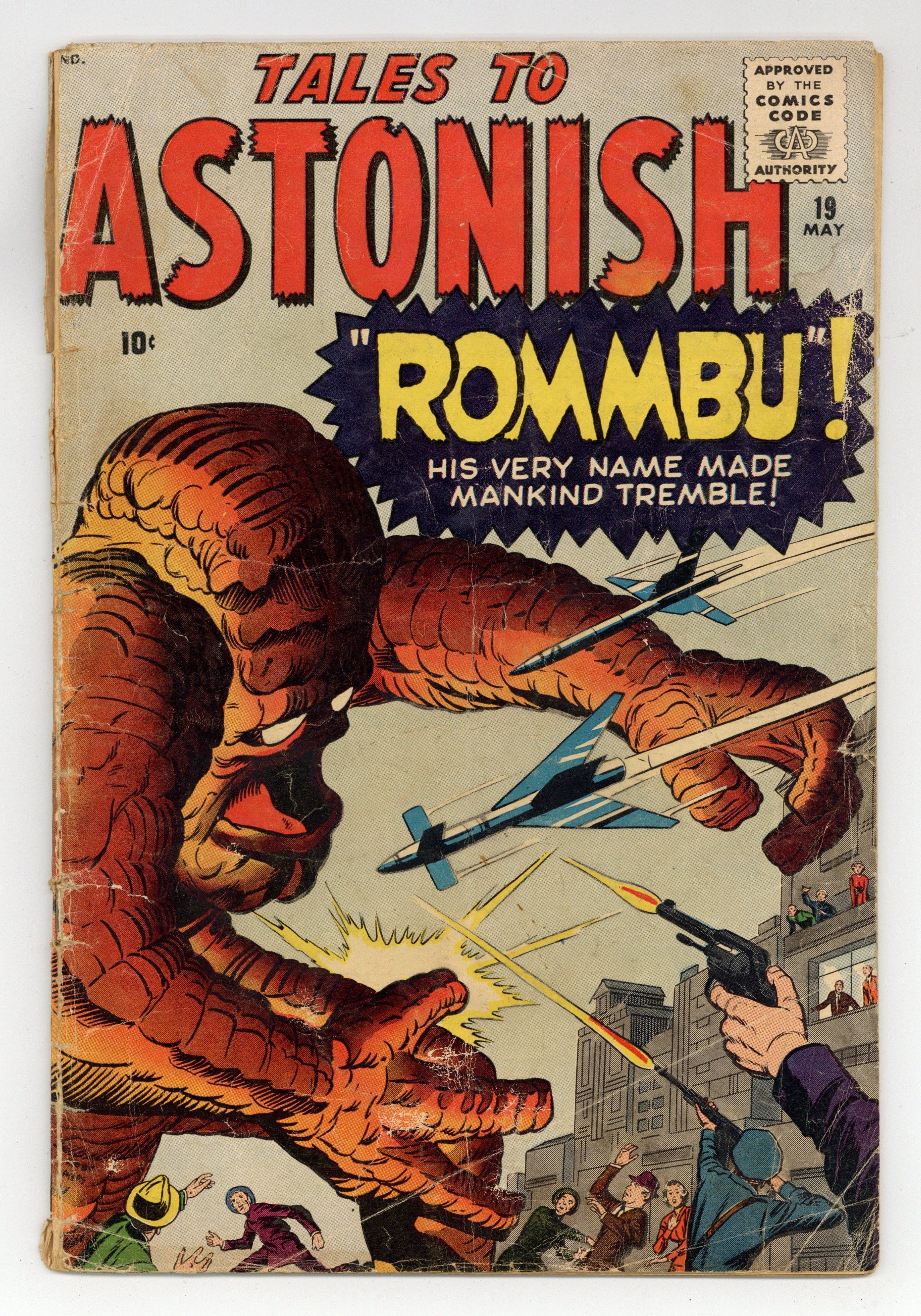 Cover by Jack Kirby and Dick Ayers. Rommbu! Part One, art by Jack Kirby and Dick Ayers; An escaped geologist convicted of armed robbery leads an alien invader to an active volcano in order to sacrifice himself to destroy the alien and protect the planet. Rommbu! Part Two, art by Jack Kirby and Dick Ayers. The Tree text story. The Thing with the Red Eyes, art by Don Heck; A gangster buys a pincushion doll that looks like his rival, and his reactions to pins stuck in it convince him that it works. The Terrible Trap!, art by Steve Ditko; A hunter with contempt for the animals he captures is captured by giant aliens and placed in a maze from which he can see a rocketship he could use to pilot his way home if only he could figure out how to escape the maze. 36 pgs., full color. $0.10. Cover price $0.10. Grade: FR 1.0 explanation of grade Condition: Used (collectible)