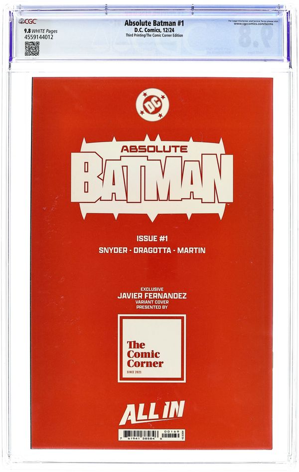 Tags: BatmanAbsolute Batman (2024 DC) 1CORNER.B CGC 9.8