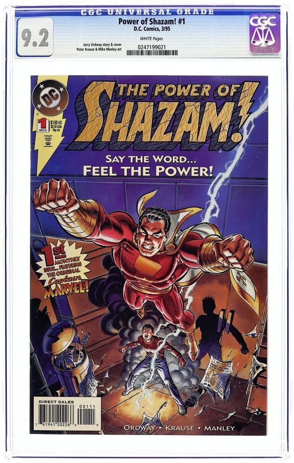 Ended Aug 4 2025 Bid History 5 bids Winning Bid $11 Cover by Jerry Ordway. Things Change, script by Jerry Ordway, art by Peter Krause and Mike Manley; Four years ago, the young Billy Batson gains the power of Shazam. In the present, Sinclair Batson arrive to the city and try to launch it to the 21 century, but fail; Billy is frustrated and Shazam strips him of his powers; What can do Billy without his power?; Introduction of Uncle Dudley.36 pgs., full color. Cover price $1.50. Grade: CGC 9.2 explanation of grade Condition: Used (collectible)