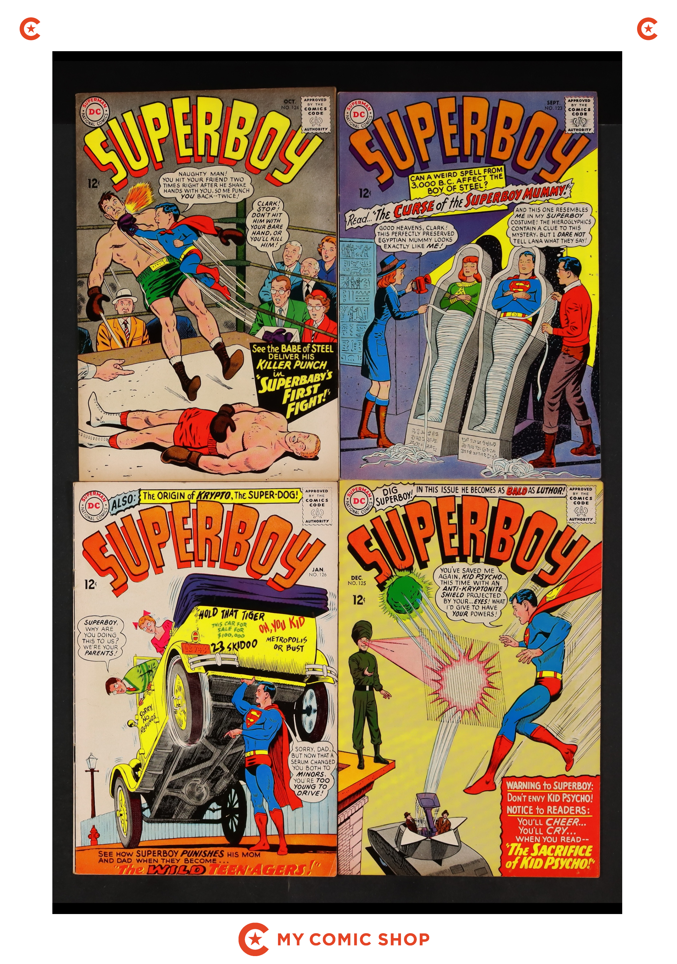 Issues 123-129 of Superboy (1949-1979 1st Series DC). Most will grade in the VG range.