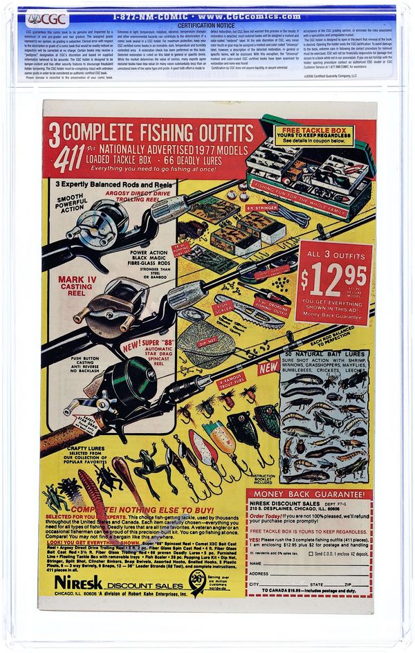 "To Begin Anew!" Guest-starring the Avengers. Script by Scott Edelman. Pencils by Al Milgrom. Inks by Terry Austin. Cover by Al Milgrom. The Super-Adaptoid is back! And after being accidentally set free during the events of Iron Man 91, the alien A.I.M. construct prepares to return to business! That is…the business of destroying the Avengers! First, the Adaptoid ambushes the golden avenger at Stark Industries and then a short time later charges into Avengers Mansion! Earth's Mightiest Heroes bravely fight off the android's surprise attack, but eventually fall one by one to the Adaptoid's mimicking powers! Fortunately though, earlier in the evening Jarvis attended one of Rick Jones' concerts and invited him back to the mansion for a chat. Once Rick sees the battle in progress, he summons the Kree Warrior! And the dynamic donnybrook is set! The Beast, Vision, Scarlet Witch, Captain America, and Captain Marvel vs. the Super-Adaptoid! Avengers (plus one) Assemble! Cameo appearances by Ronan and Minerva (first appearance). Flashback cameos by Chronos, Zeus, and Mentor. Avengers Lineup: Beast, Captain America, Iron Man, Scarlet Witch, and the Vision. (Notes: The Super-Adaptoid previously appeared in Iron Man 51 and returns to battle the Avengers again in Marvel Two-in-One 75. This issue includes a full-page ad for Hostess Cupcakes featuring Captain America.) 32 pages. Cover price $0.30. Grade: CGC 9.6 explanation of grade Condition: Used (collectible)