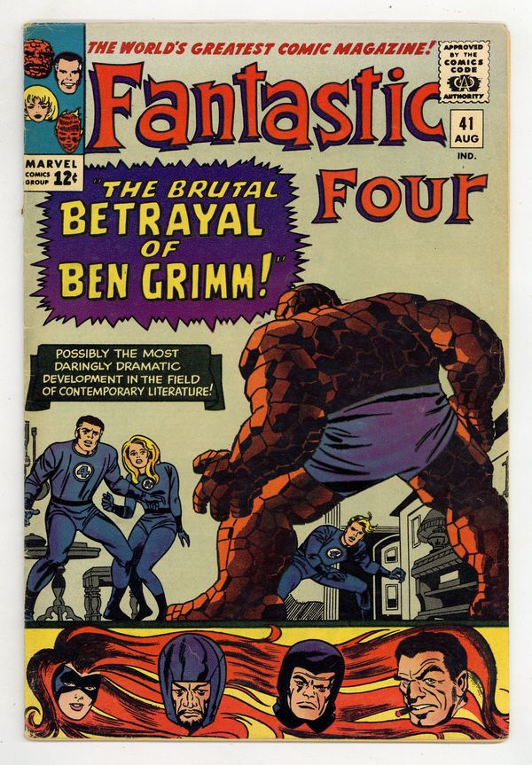 Ended Nov 24 8:09 PM CST Bid History 9 bids Winning Bid $17 Cover pencils by Jack Kirby, inks by Frank Giacoia. The Brutal Betrayal of Ben Grimm!, script by Stan Lee, pencils by Jack Kirby, inks by Vince Colletta; The Frightful Four kidnap the Thing and brainwash him into aiding them against the rest of the FF. 36 pgs. $0.12. Cover price $0.12. Grade: VG- 3.5 explanation of grade Condition: Used (collectible)
