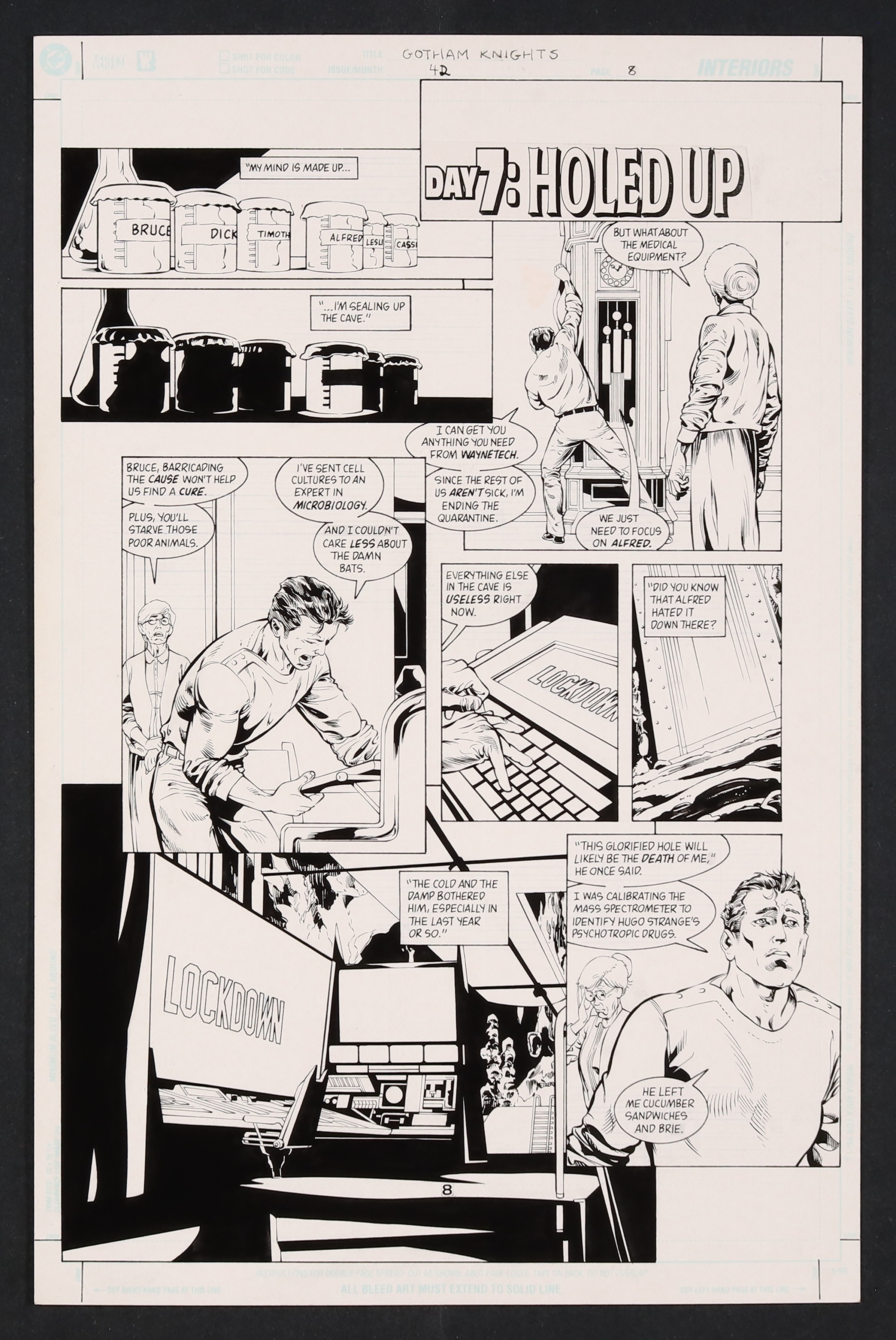 • After finding out that the bats are the carriers of The Clench, Bruce closes up the Batcave for what could be the final time as he reflects on how Alfred hated it down in that "glorified hole." Pencils and ink on DC Comics art board. 11 1/4" X 17"