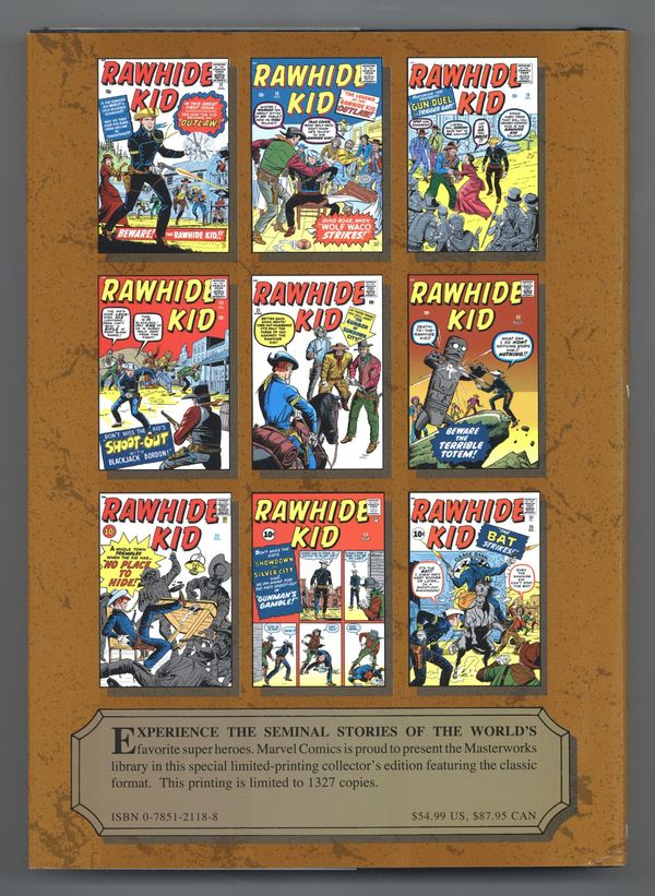 Ended Aug 25 2025 Winning Bid $29 Volume 63 - 1st printing. "RAWHIDE KID" Collects RAWHIDE KID #17-25. Written by STAN LEE. Art by JACK KIRBY, DON HECK, DICK AYERS & PAUL REINMAN. Cover by JACK KIRBY. Introduction by Stan Lee. Saddle up, buckaroos! It's time for the Marvel Masterworks to tame the wild, wild West with the one and only Rawhide Kid! Back before Stan 'The Man' and 'King' Kirby spun stories of sensational super heroes, they told the tale of a young man who bore two Colt six-shooters and his mission to bring law to the American frontier. After his Uncle Ben Bart was killed at the hands of outlaws, Johnny Bart made it his personal mission to bring justice to the town of Rawhide. Packed full of shootouts and showdowns, renegades and rustlers, guns and girls galore, these Western yarns will be sure to please you in the Mighty Marvel Manner! We guarantee you won't be able to hold on to your ten-gallon hat when you read the tale of the Terrible Totem, the Kid's battle against the bank robbing Bat, and the war with Wolf Waco! Lasso your copy today, True Believer! Hardcover, full color. Cover price $54.99. Grade: NM 9.4 explanation of grade Condition: Used (collectible)