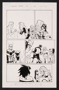 Having achieved empathy and understand thanks to a spell from Nico, the Runaways and the Avengers Academy make up after fighting one and a half super-powered battles over the Runaways' vagabond lifestyle in the wake of the Superhuman Registration Act. Signed by Moline in lower margin. Pencil and ink on Marvel Comics art board. 11" x 17 1/4".