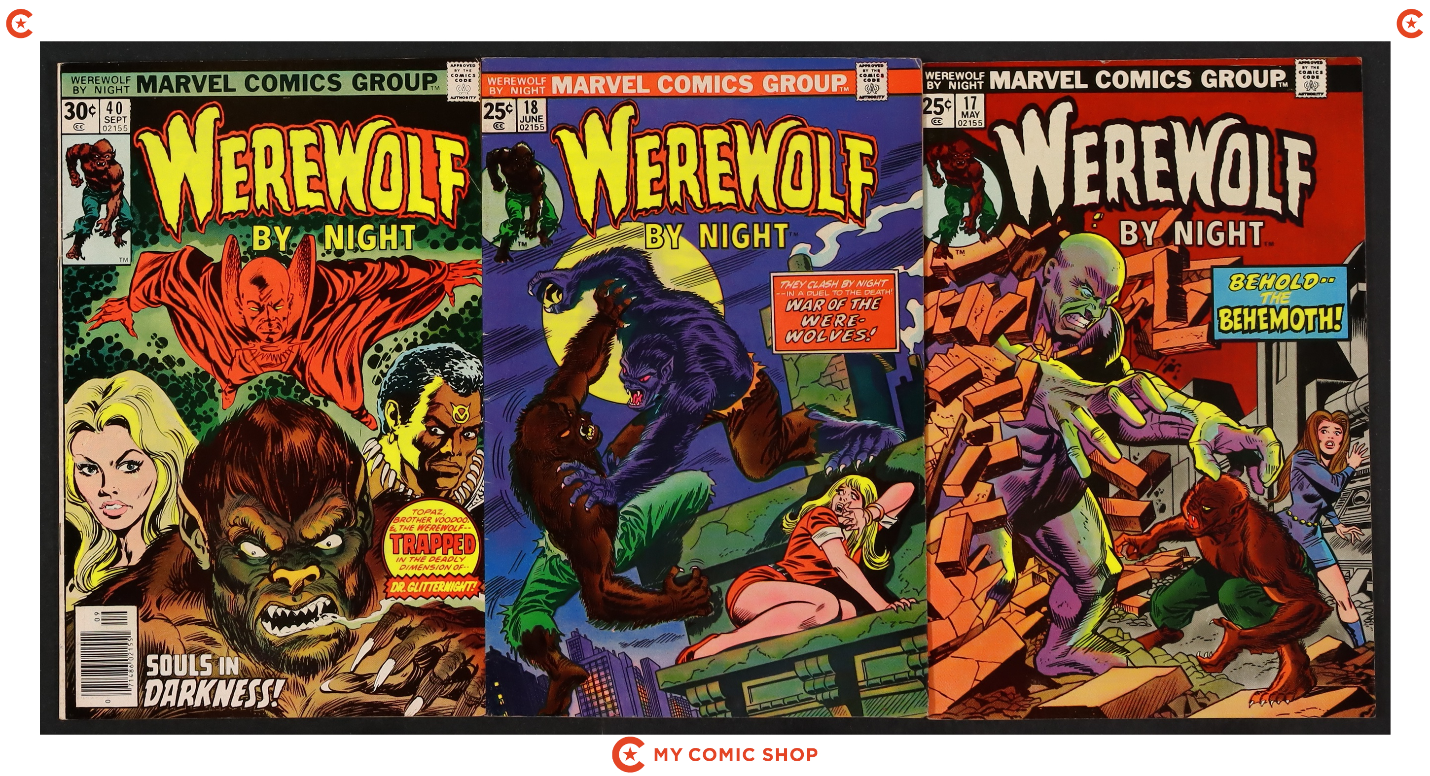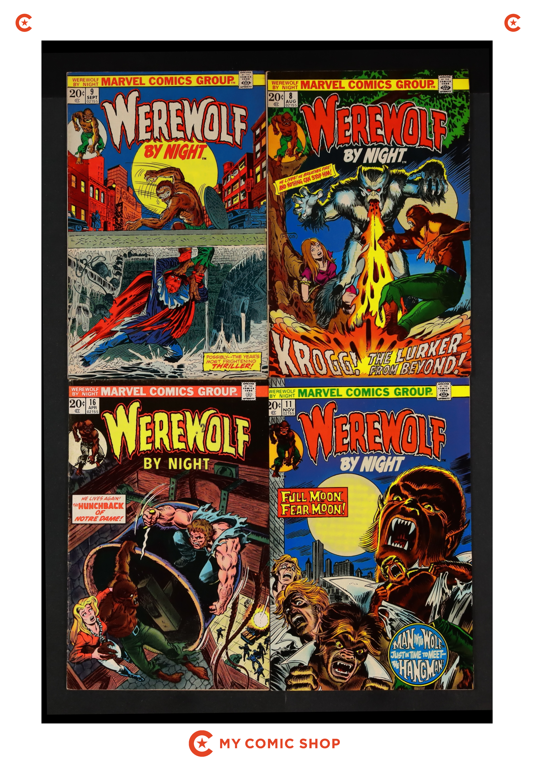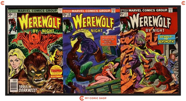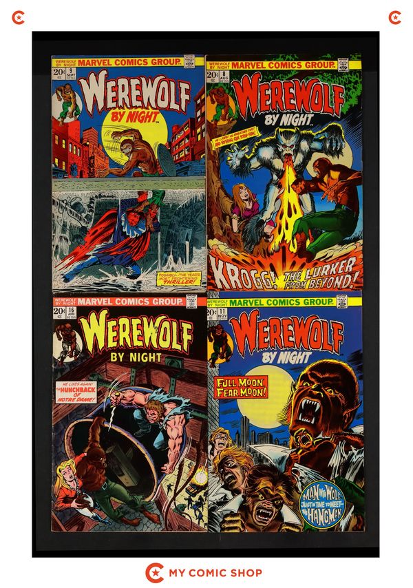 Issues 8, 9, 11, 16-18, and 40 of Werewolf by Night (1972 1st Series). Most will grade in the FN to VG range.