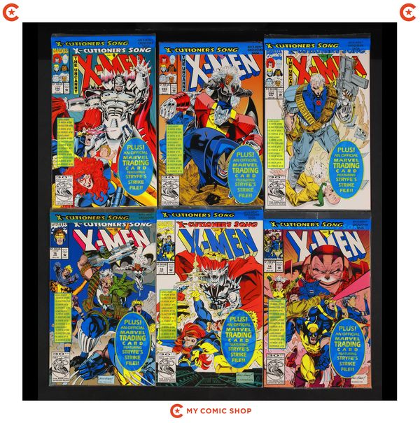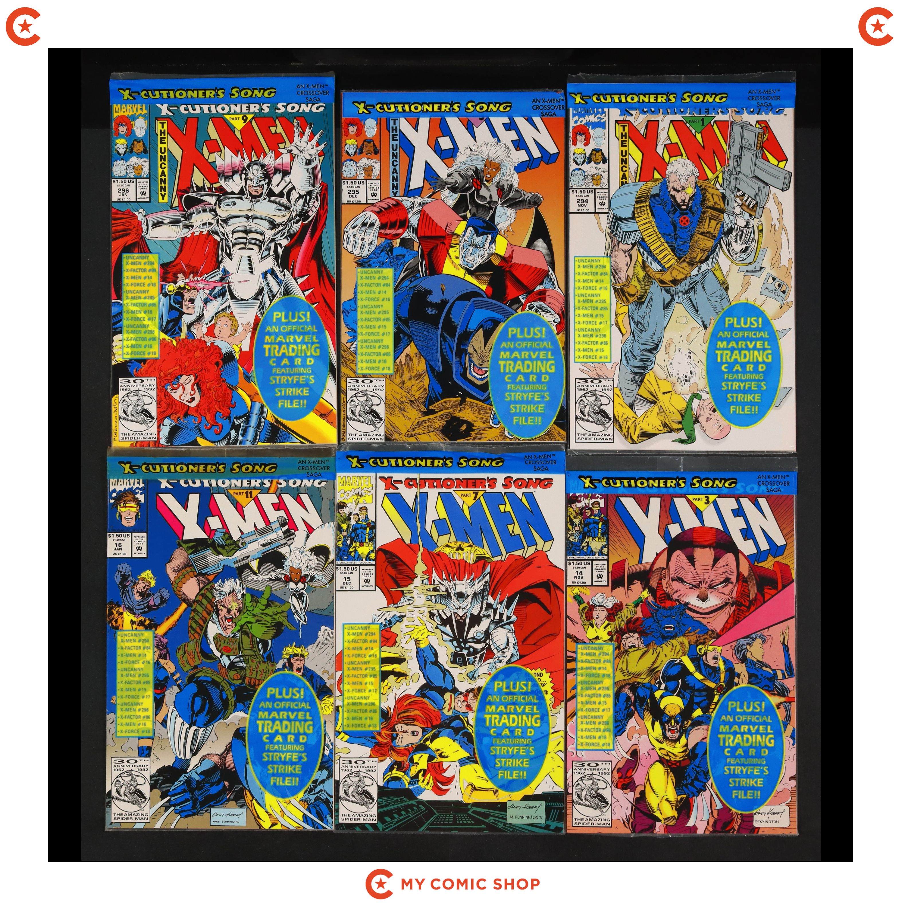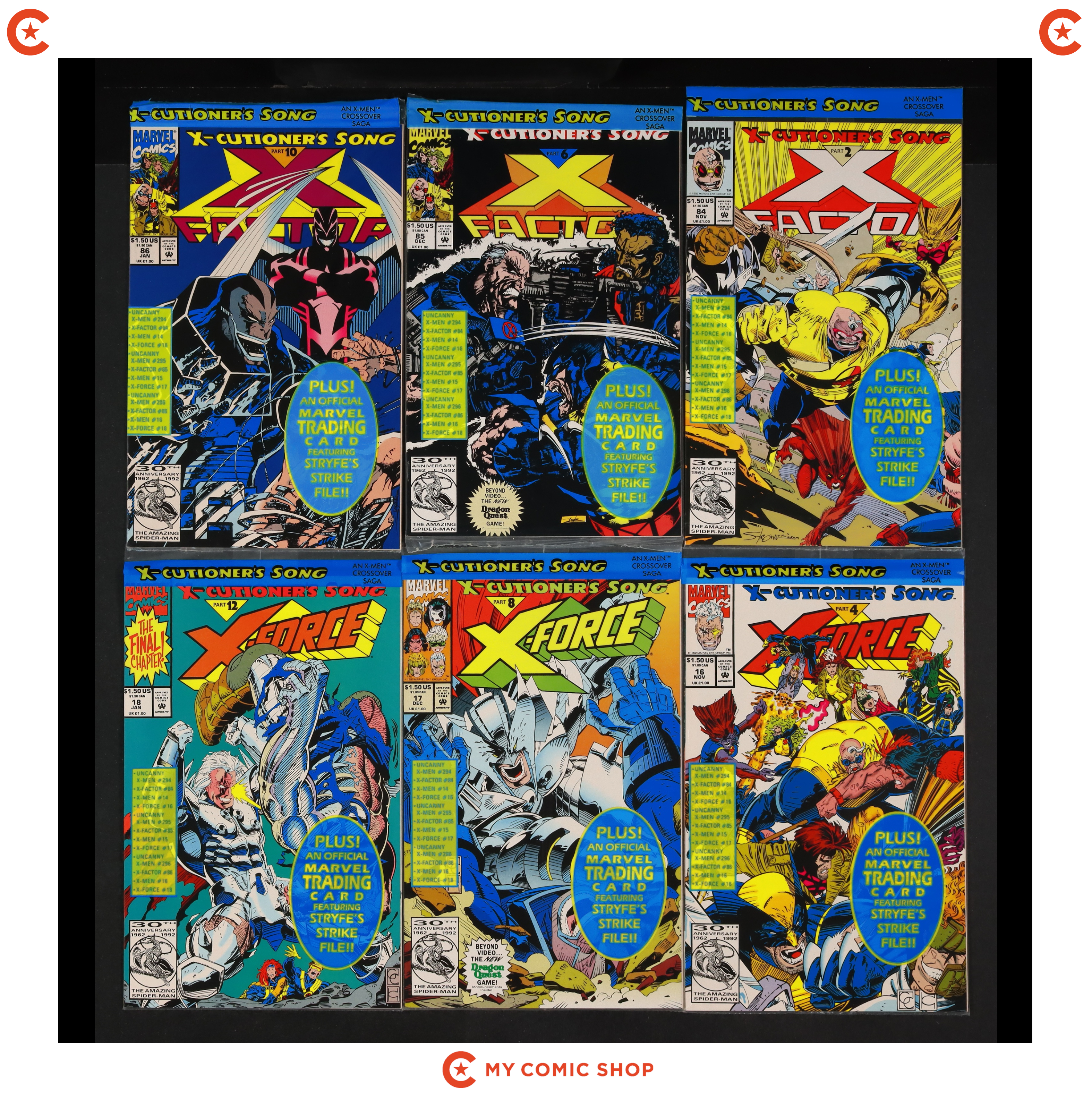Issues 294P-296P of Uncanny X-Men (1963 1st Series); 14P-16P of X-Men (1991 1st Series); 84P-86P of X-Factor (1986 1st Series Marvel); and 16P-18P of X-Force (1991 1st Series). Most will grade in the VF range; #15P of X-Men polybag is open at the top, trading card included.
