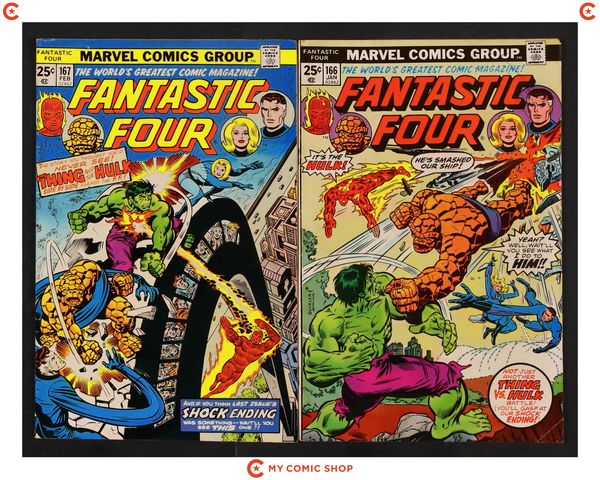 Issues 166 and 167 of Fantastic Four (1961 1st Series). Both will grade FR (missing Marvel Value Stamp).