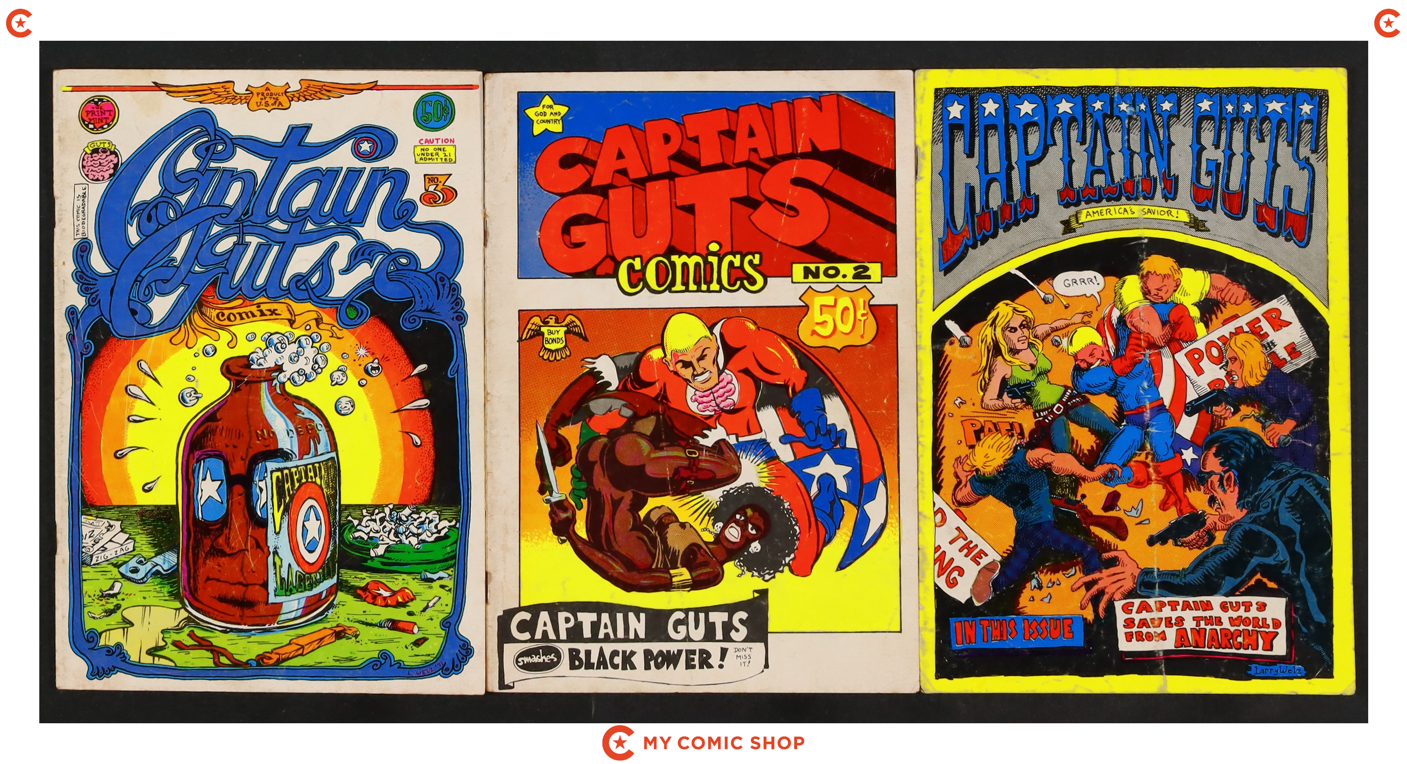 Captain Guts Lot of 3Published 1969 by Print Mint.Captain Guts Lot of 3