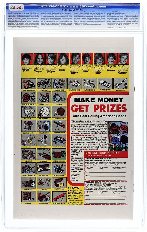 "If We Should Fail -- The World Dies Tonight" Script by Marv Wolfman. Art by Sal Buscema (layouts) and Dave Hunt (finishes). Cover by Dave Cockrum and Joe Sinnott. The Black Panther, Captain America, and Iron Man are spending a relaxing afternoon at Avengers Mansion, when all of a sudden an armored intruder attacks! The three avengers quickly halt Jason Beere's reckless assault. However, before he collapses the megalomaniac mumbles something about four neutron bombs scattered throughout the world! The shield-slinger travels to Peru to disarm the first bomb, Shell-head to Moscow for the second one, and T'challa to the Arctic Circle for the third. But where, oh where, is the fourth bomb? (Notes: Jason Beere appears next in Iron Man 115. This issue was a fill-in story during the Korvac Saga.) 36 pages Cover price $0.35. Grade: CGC 9.6 explanation of grade Condition: Used (collectible)