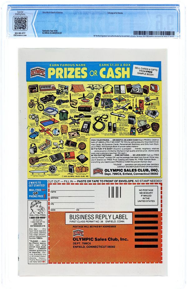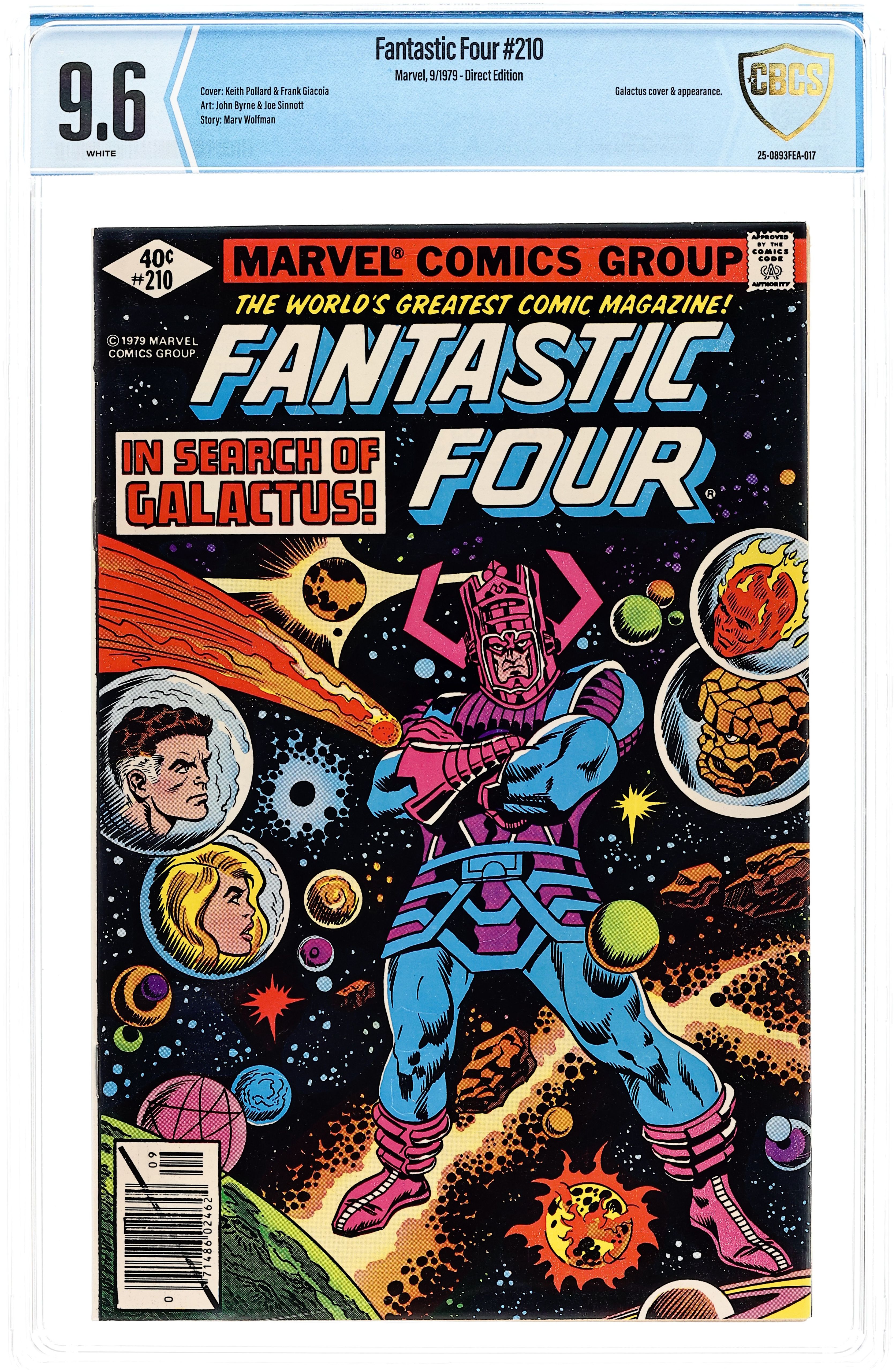 Direct Edition. "In Search of Galactus" Written by Marv Wolfman. Pencils by John Byrne. Inks by Joe Sinnott. Cover by Keith Pollard and Frank Giacoia. The Fantastic Four locate Galactus' ship and confront the Devourer of Worlds inside! Galactus is open to the possibility of coming to Earth to battle the Sphinx, but the FF must do him a favor first...find his next herald! Note: The FF's preceding encounter with Galactus was in Fantastic Four 175. Cover price $0.40. Grade: CBCS 9.6 explanation of grade Condition: Used (collectible)