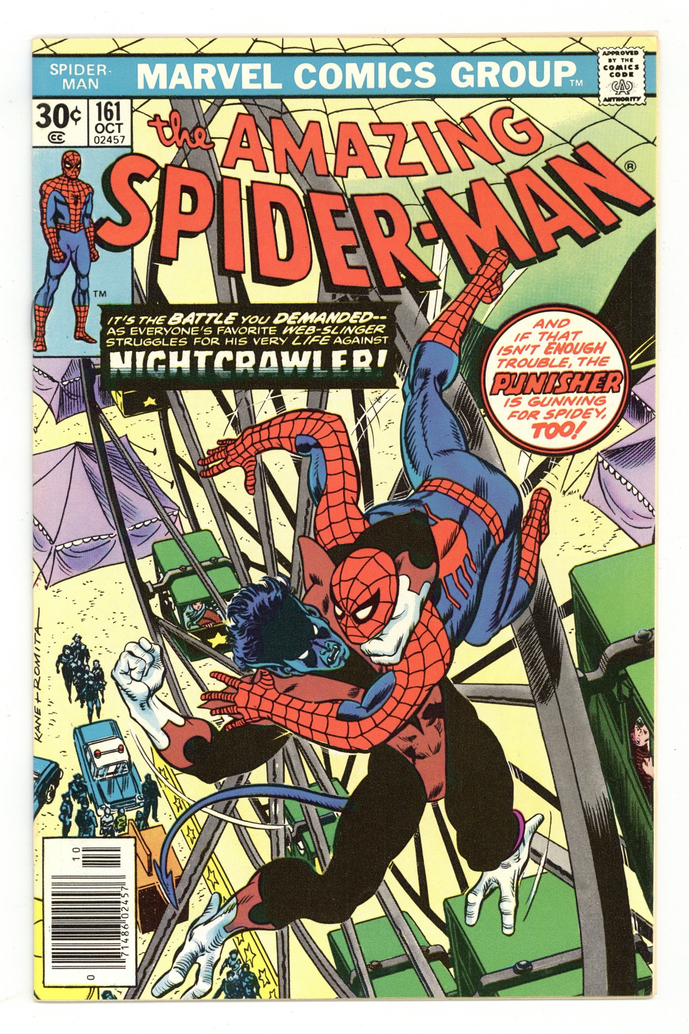 Ended Sep 22 2025 Bid History 12 bids Winning Bid $51 "And the Nightcrawler Came Prowling, Prowling" Part 1 of 2. Guest-starring Nightcrawler. Script by Len Wein. Art by Ross Andru (breakdowns), Mike Esposito (finishes), and Dave Hunt (backgrounds). Cover by Gil Kane and John Romita. Someone is going around New York City impersonating the Punisher! The Amazing Spider-Man thinks the sniper might be Nightcrawler! While the new X-Man believes the shooter could be the web-slinger! First at Coney Island and later at the Roosevelt Island Tramway, Nightcrawler and the wall-crawler clash amid their mutual confusion! But the situation becomes crystal clear once the heroes find themselves in the crosshairs...of the real Punisher! The bullets fly next issue! Cameo appearances by the Punisher, Wolverine, Colossus, Mary Jane Watson, Harry Osborn, Liz Allan, Joe Robertson, and J. Jonah Jameson. (Notes: This issue features the first meeting between Spider-Man and Nightcrawler. The web-slinger meets all of the new X-Men for the first time in Marvel Team-Up Annual 1. This story was reprinted in Marvel Tales 214.) 36 pages. Cover price $0.30. Grade: VF+ 8.5 explanation of grade Condition: Used (collectible)