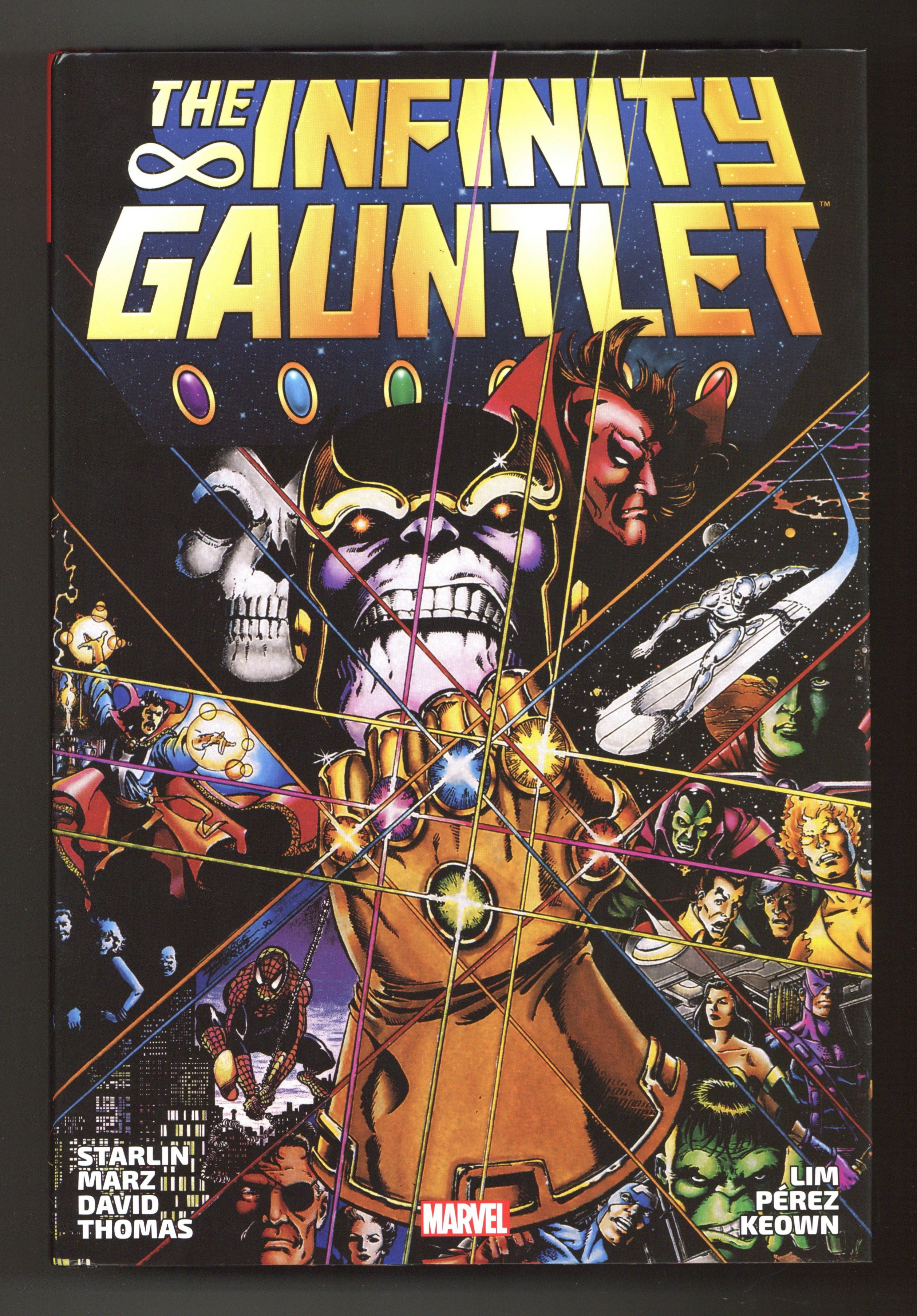 Death has released Thanos from her cold embrace, and he plans to repay her by murdering half the universe! But even as the Mad Titan gathers the six Infinity Gems from across the galaxy, assembling them into the Infinity Gauntlet and gaining truly godlike powers, a host of heroes gather to oppose him - including the Silver Surfer, Adam Warlock, Gamora, Drax the Destroyer, Dr. Strange and the Hulk! Even with Dr. Doom, Galactus and the universe's cosmic powers aiding them, can Marvel's mightiest possibly prevail against Thanos the all-powerful? At long last, the fan-favorite cosmic event is collected in its entirety!
