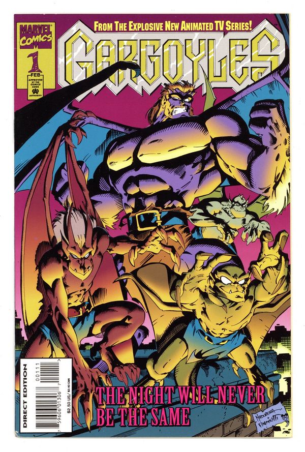 Direct Edition. Cardstock Embossed Cover. Written by Martin Pasko. Art by Amanda Conner and Alberto Saichann. Cover by Joe Madureira and Jimmy Palmiotti. Fiends In High Places; David Xanatos is up to his same tricks as and Demona try to capture the Gargoyles; They do this by setting up the Gargoyles and making them look bad; It is up to Eliza Maza to protect the Gargoyles' reputation but things are made more difficult for her when Goliath won't stay out of it and she has to hide things from her new partner Matt Bluestone. Written In Stone introduction to the characters and creative team, written by Hildy Mesnik, art by Amanda Conner and Alberto Saichann. 36 pages, full color. $2.50. Cover price $2.50. Grade: VF- 7.5 explanation of grade Condition: Used (collectible)